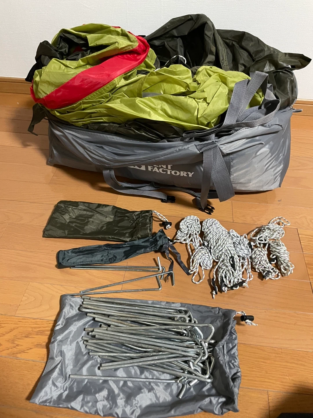 あたたかさテントファクトリーのテントです。 2ルームとなっているので、タープなど必要なくテントだけでキャンプできます。 リビング部分に引けるグランドシート付き。 この上にシートを引けばお座敷テントができます。 こちらの商品と同じです。 https://store.shopping.yahoo.co.jp/e-lodge/aut-tf4stu2nl.html?nodeeplink=1 【情報】 ブランド:テントファクトリー 【状態】 使用感あり 【付属品】 付属品は写真に写ってい るものが全てです 中古品であるということをご了承の上、ご購入ください。 ご不明点等ございましたらご連絡ください。