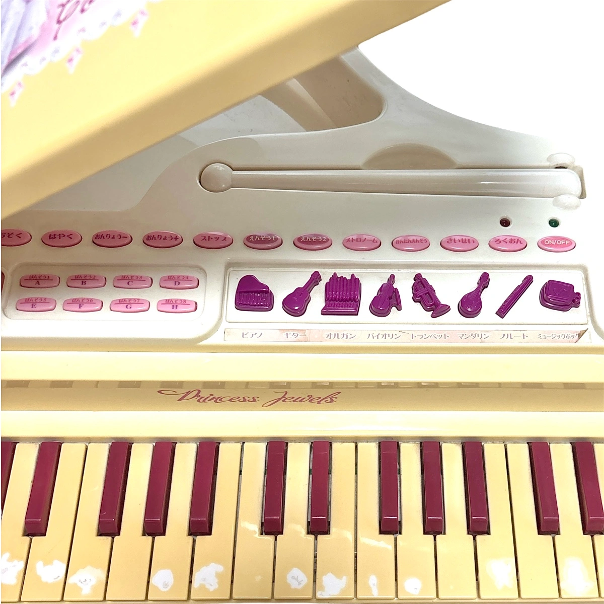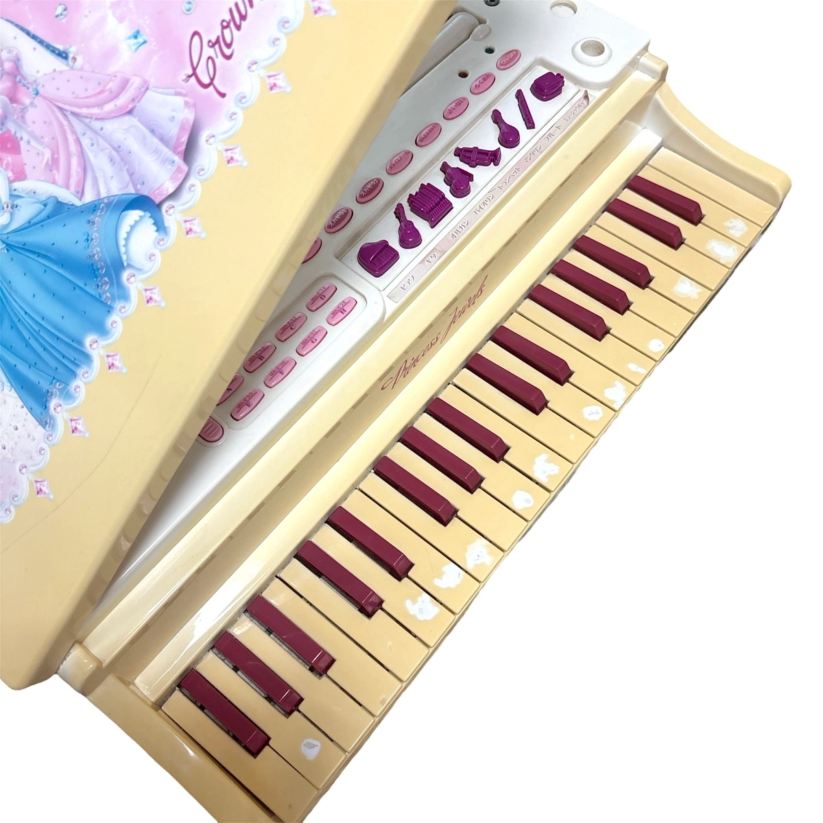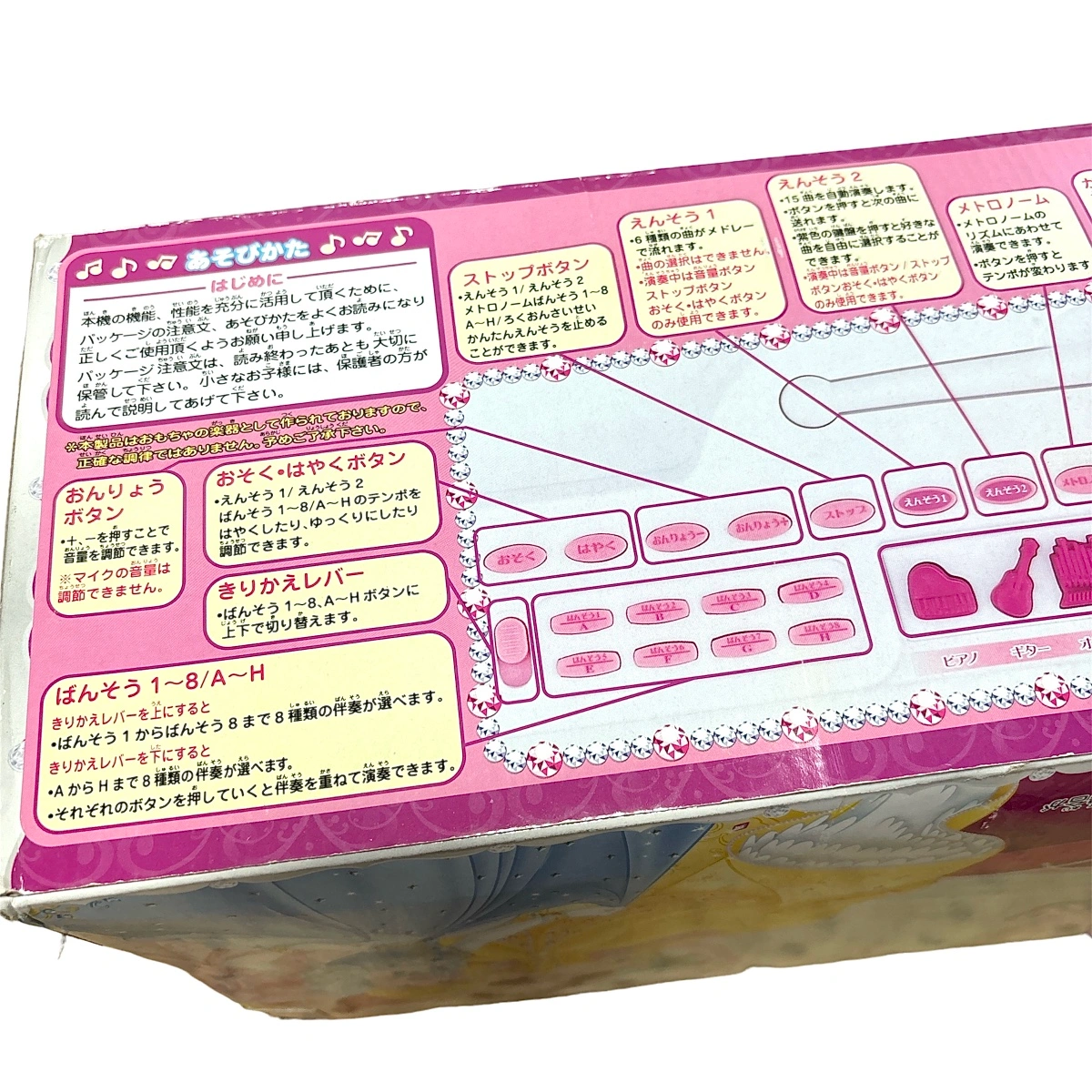 ディズニープリンセス Disney うたえるグランドピアノです♪ ☆箱あり ☆動作確認済み ※マイクのみ接触が悪くてほぼ使用できません(一応入れたままにします) ☆単三電池3本使用 ☆対象年齢…3歳以上 ☆デモソング15曲内蔵 ☆録音・再生機能付き(単音のみ) ☆和音演奏可能 ☆楽器ボタン…8種類の楽器の音色が選べます) ☆伴奏ボタン…レバーの切り替えで全16種類の伴奏を選べます。それぞれのボタンを押していくと伴奏を重ねて演奏できます ☆自動演奏、リズム伴奏のテンポを変更可能 ☆鍵盤を押すだけ!かんたん演奏つき ☆メトロノーム機能あり ☆同時に音が出せる和音演奏可能! ☆メドレーソングは全6曲を自動演奏 【曲目&曲順】全15曲(演奏2) ①エリーゼのために ②オールドブラックジョー ③夢路より ④グリーンスリーブス ⑤ノクターン変ホ長調9の2 ⑥サリーガーデンズ ⑦愛の夢 ⑧大きな古時計 ⑨コンプトンレース ⑩サンタルチア ⑪乙女の祈り ⑫赤い川の谷間 ⑬ワルツィング・マチルダ ⑭テキサスの黄色いバラ ⑮ゆかいな牧場(マクドナルドのおじさん) 【注意】 ●子供がところどころにシールを貼っていた為、シール跡があります。また、落ちない汚れや経年劣化により変色していますので、綺麗な白ではなく黄ばんでいます。 ●椅子はヒビが入っています。 中古品になりますので、ご理解のうえご購入ください! #Disney #シンデレラ #アリエル #白雪姫 #オーロラ姫 #ジャスミン キャラクター···ディズニーキャラクター 他サイトでも出品中です。 他で売れた場合、急に削除しますので、ご了承ください