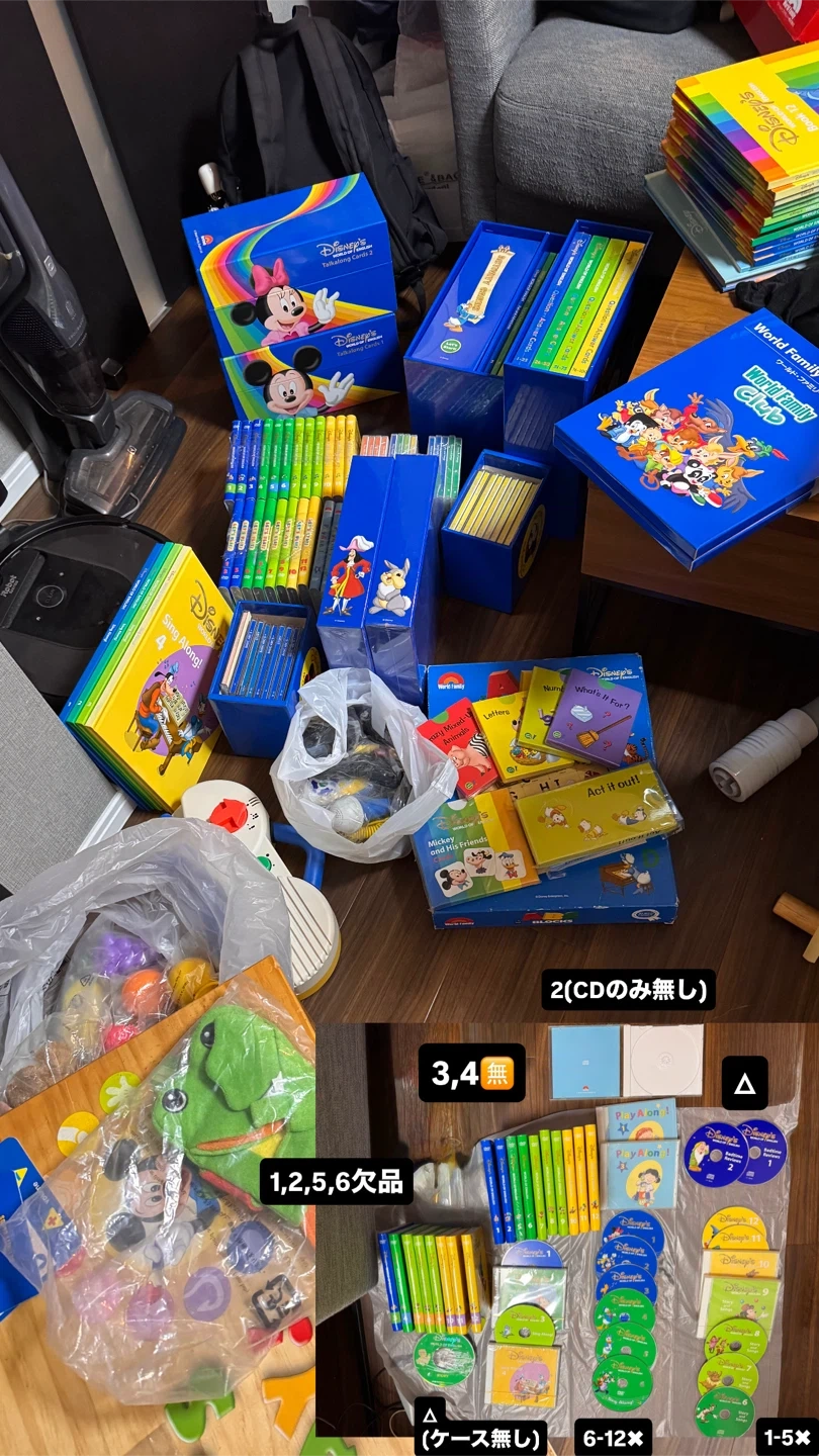 出品理由 中古商品をお譲り頂きましたが使用しない為 一枚目右下が主な欠品(拡大したのが2枚目) カード類は一部開封 もう一BOXは完全未開封 CD類は13枚ほど開封済み 残り未開封 プレイセット(箱の中身)(9割未開封) 詳しく見たい方はご連絡ください。 +5000円頂けましたら10キロ前後の範囲のお家まで配送 (積み込みはご協力お願いいたします) またそれより遠い方は要相談ですが+1万で配送可能。 収納する棚もある為スペースの確保も必要ですが こちらにプレイセット以外全て収納できます。 一部埃などもあります。 完全にクリーニングすることは難しいので ご了承ください