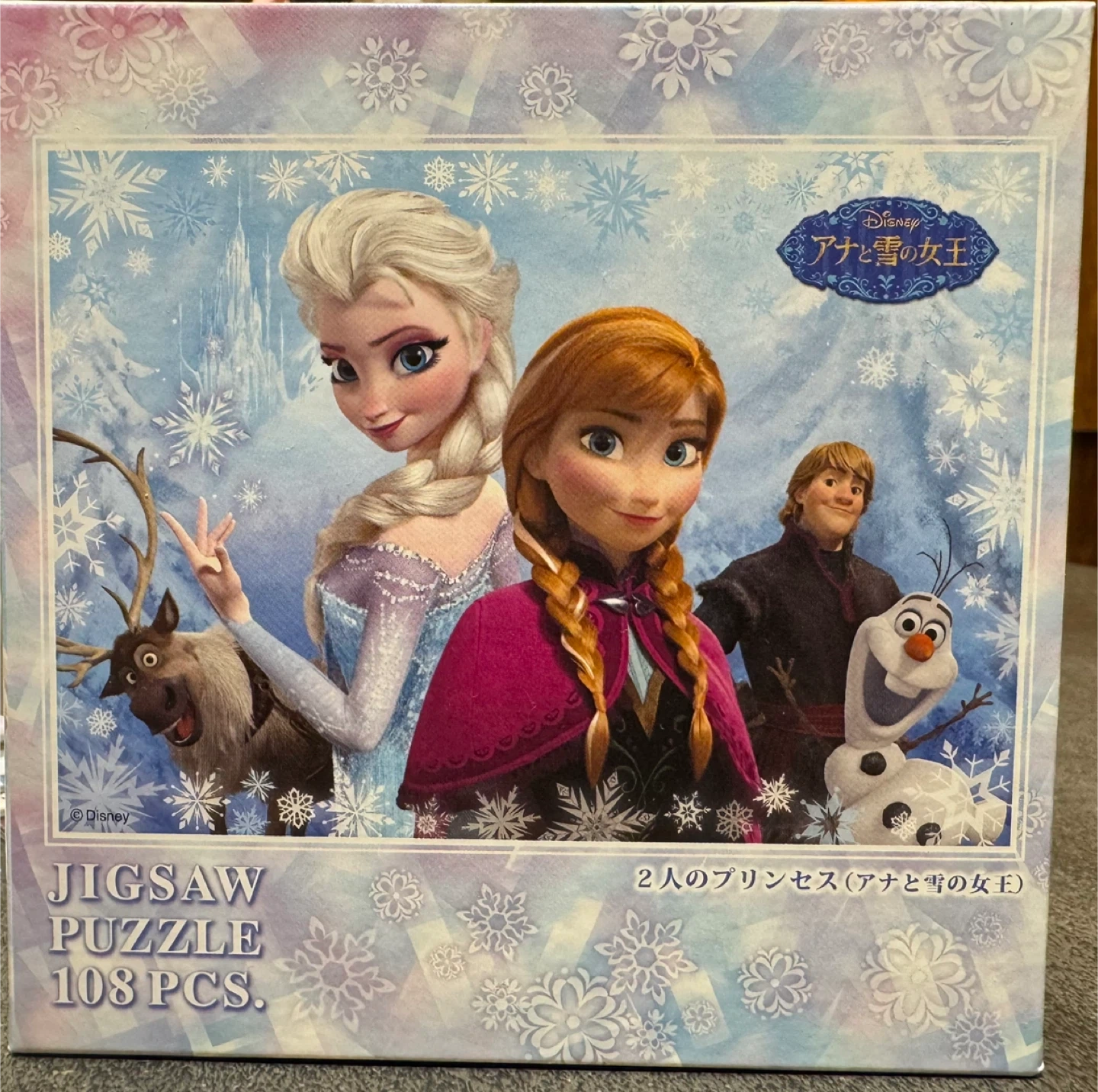 ディズニーのアナと雪の女王のジグソーパズルです。 ・108ピース ・箱あり ・開封済み、ピースは全て揃っています ・サービスカード、のり、ヘラ付き ほぼ未使用なのできれいですが、 中古品であることをご了承ください。