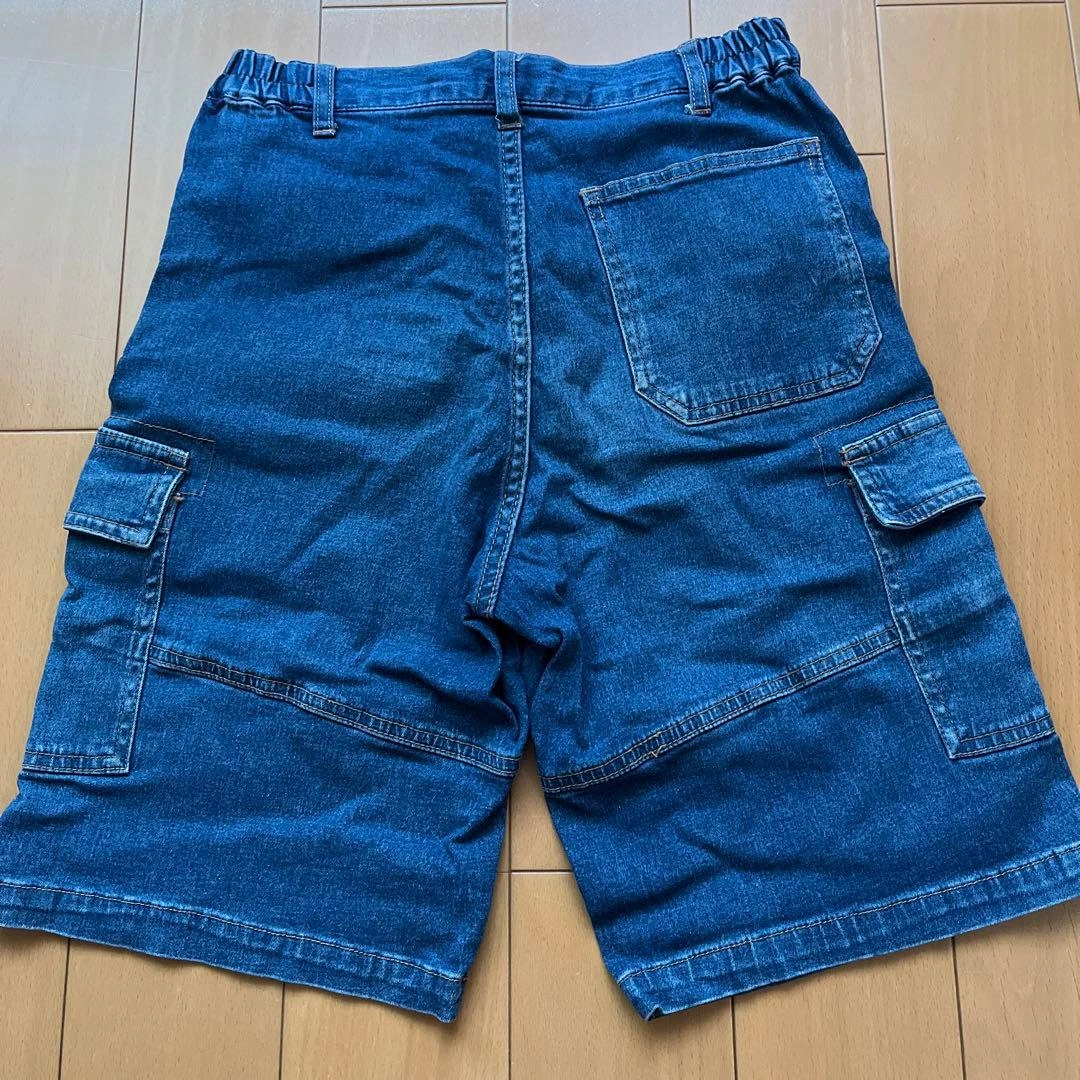 パンツ丈···ハーフ・ひざ丈 股下…22㎝ サイズ…135〜145㎝ 胴囲…54〜62㎝ 素材…綿 97% ポリウレタン3% ノーブランド品ですが、着用回数がそんなに多くなかったので、破れ等なく生地もしっかりしています。 お洗濯による色落ちがあると思いますが、適度なデニムのダメージになっていると思います。 usedにご理解いただける方、お取引きよろしくお願いします。