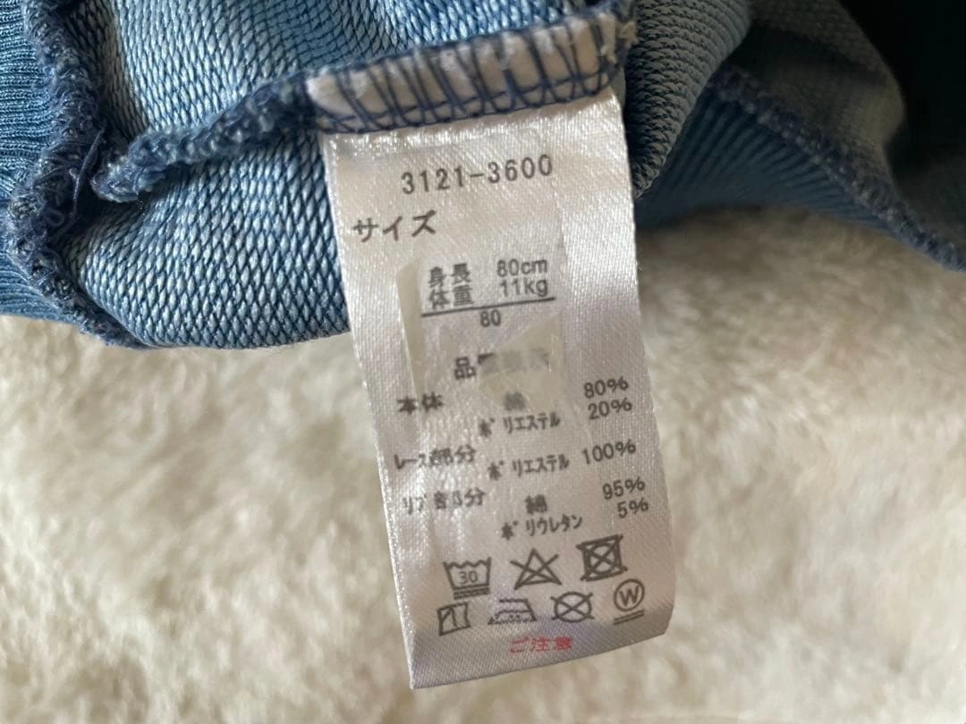 デニムブルー レース襟 バルーンスリーブ トレーナー80