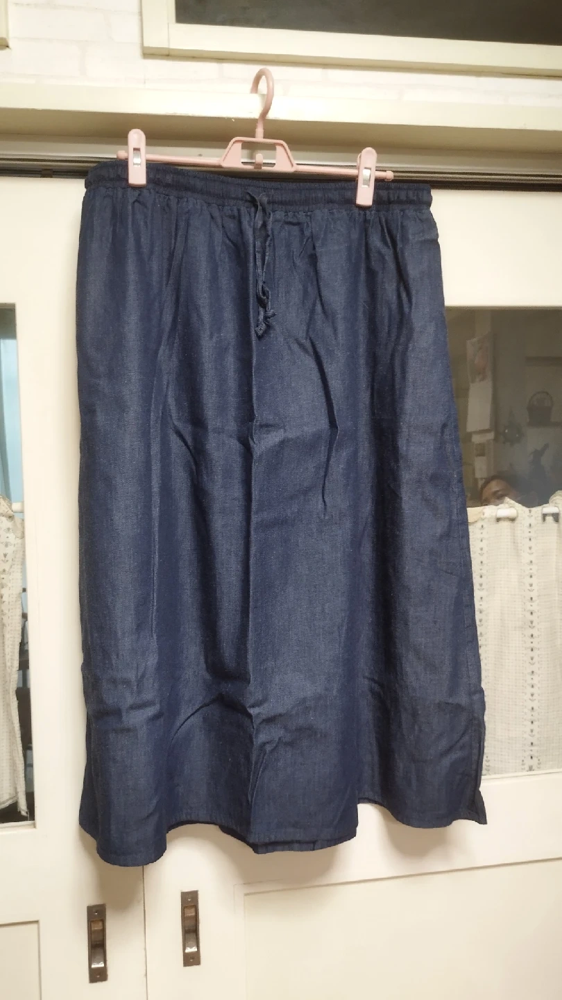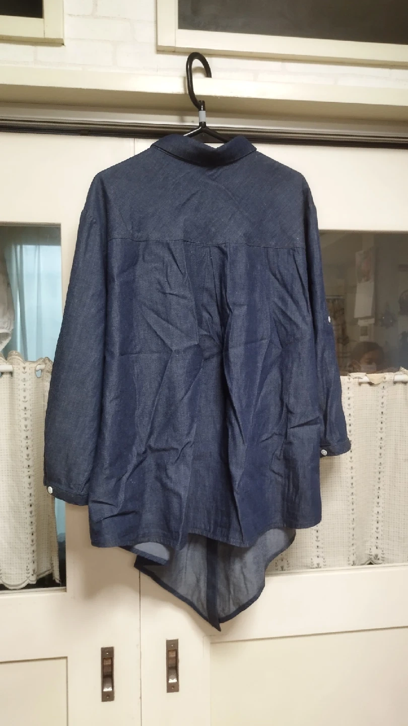 デニムのシャツとスカートのセットアップです ・色:デニムブルー ・サイズ:5L ・シャツとスカートのセットアップ 間違えて購入してしまいました。サイズ大き過ぎました。5Lです。写真よりずっとネイビーです。 ご覧頂き有難うございます。大き過ぎて着ていません。ウエストはオールゴムです。平置きですのて伸びしろがあります。袖はロールアップ出来ます。3シーズン対応します。シャツは裾が中央が長くなっています。シャツボタンを外してもむすんでも着用可能です。デニム生地洗濯も楽です。採寸は平置きでのサイズになります。素人採寸です。多少のズレお許し下さい。 ウエスト...435cm ヒップ...73cm スカート丈...73cm 上下別々でも着用可能です。 宜しくお願い致します。