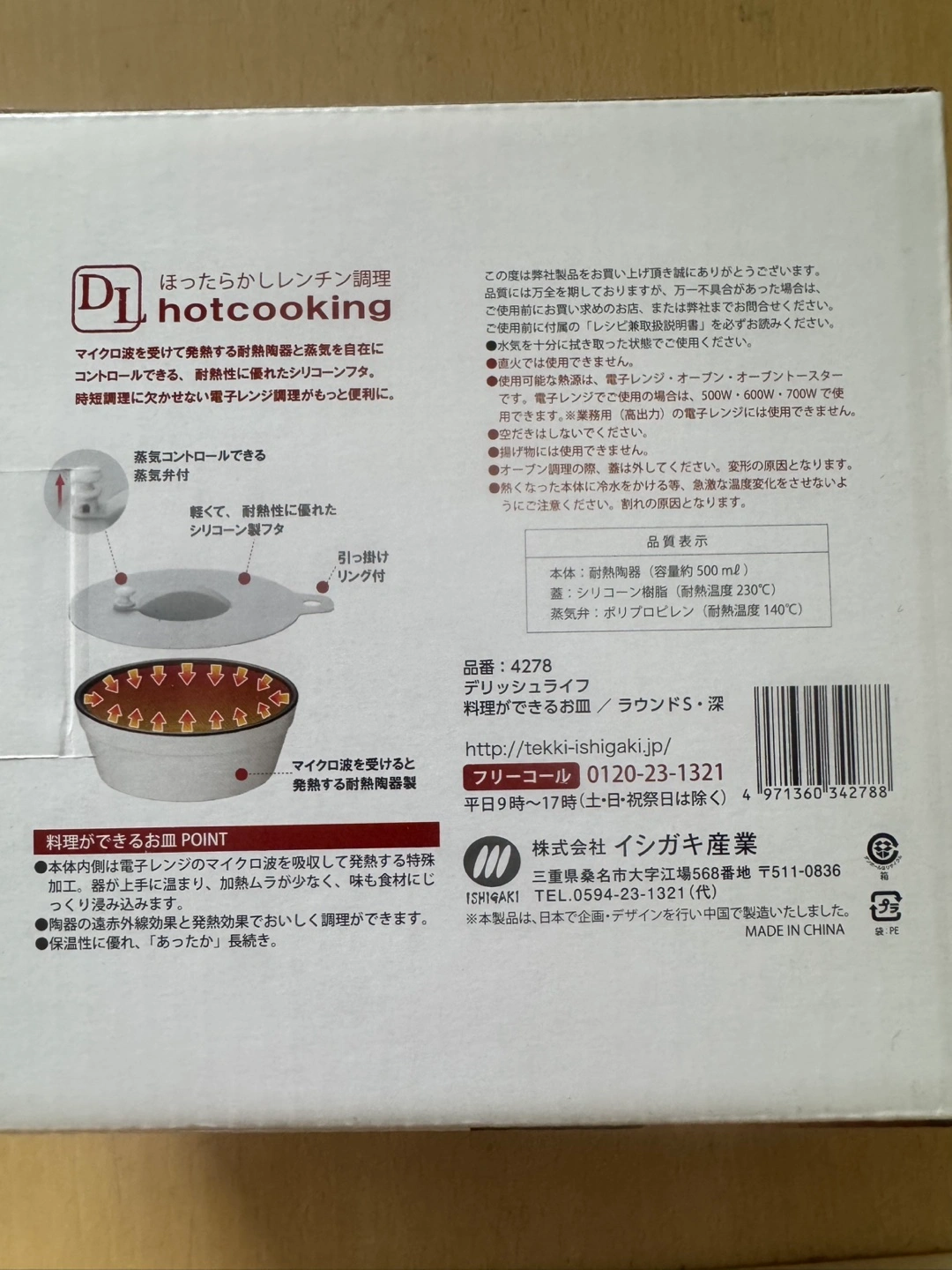 【情報】 ブランド:ISHIGAKI 商品名:デリッシュライフ 料理ができるお皿/ラウンドS・深 容量:約500ml(本体) 【素材】 本体:耐熱陶器 蓋:シリコーン樹脂 蒸気弁:ポリプロピレン 取扱説明書&レシピ付き レシピ アヒージョ、麻婆豆腐、サーモンのグラタン、ココットカマン、さわらの南蛮漬け レンジで時短調理。そのまま食卓へ レンジ調理・下ごしらえ オーブン調理 冷蔵庫保存 食洗機使用可能 ファミリーマート登戸郵便局西店まで来てくださる方、よろしくお願いいたします