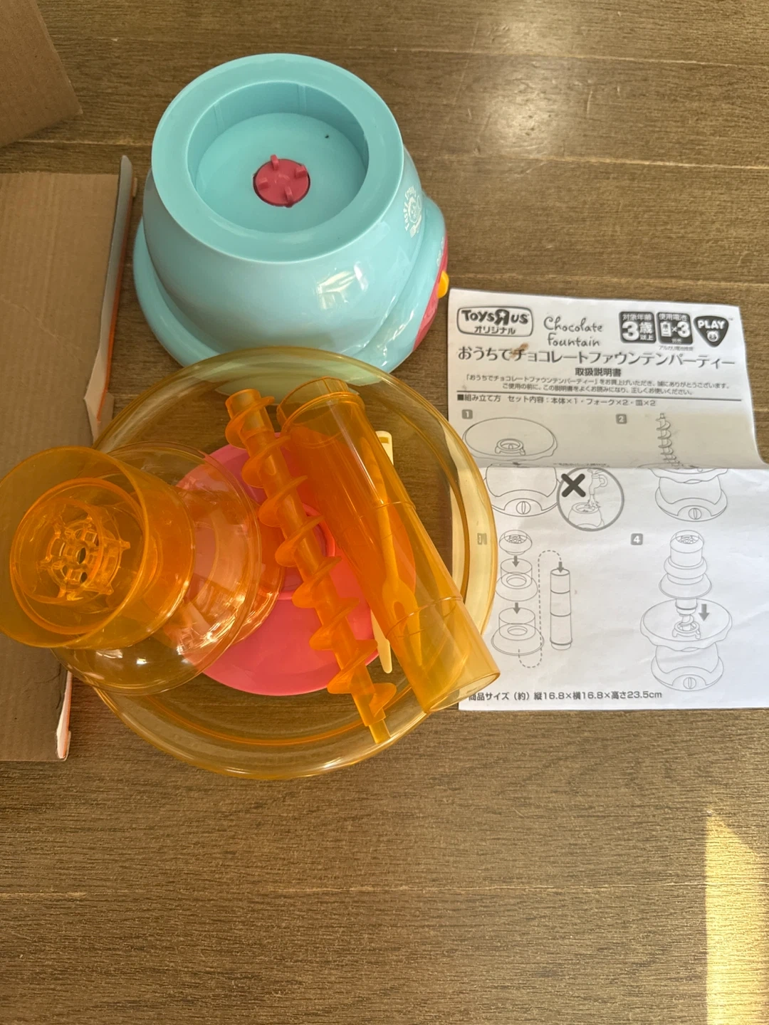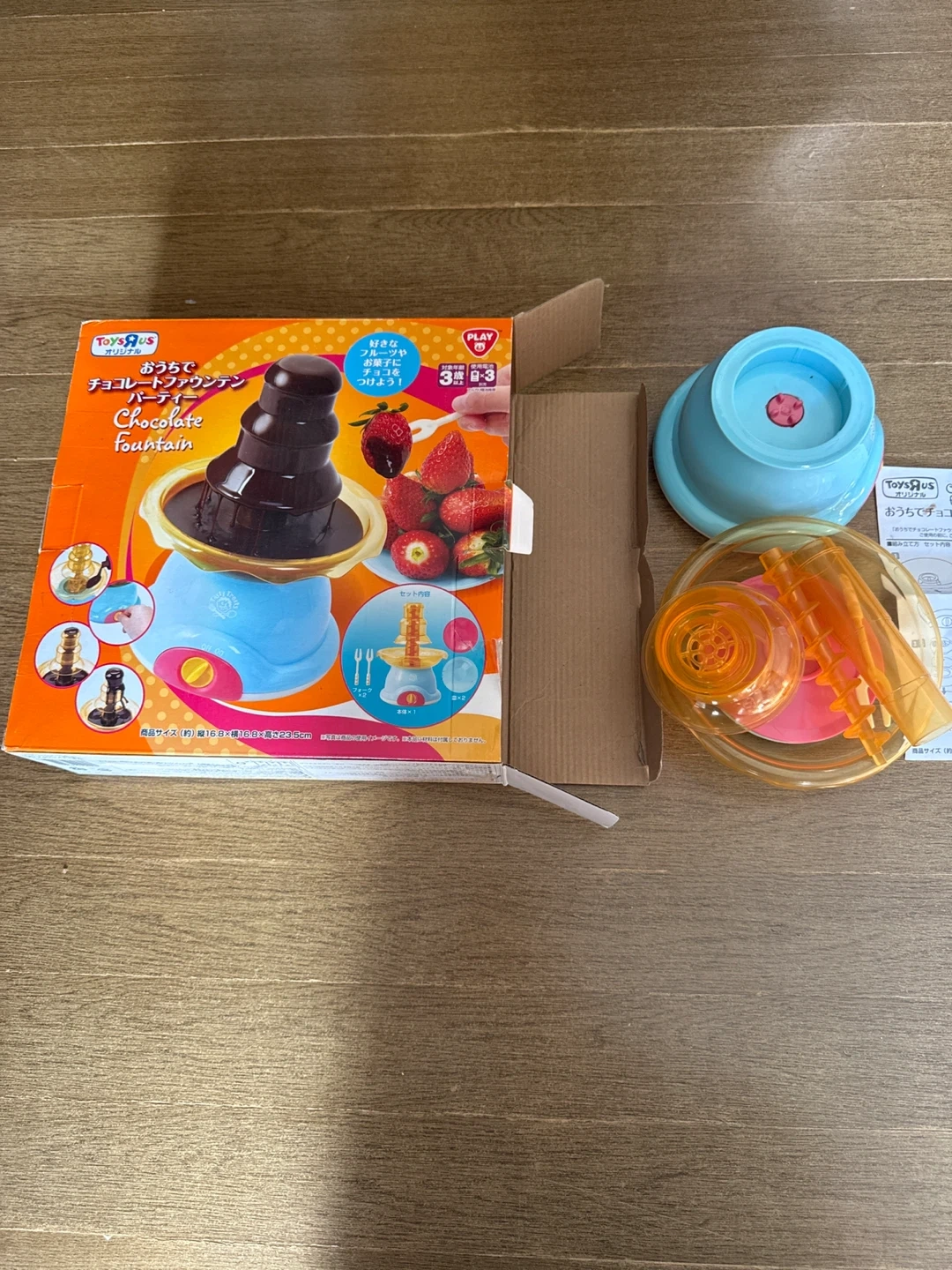 トイザらスのチョコレートファウンテンです。 ・おうちでチョコレートファウンテンを楽しめます ・箱、説明書付き ・パーツは全て揃っています ・使用感は少なめです 1度遊んだだけでしまってました。 自宅保管の為神経質な方はご遠慮下さいm(_ _)m 中古品であることご了承ください。