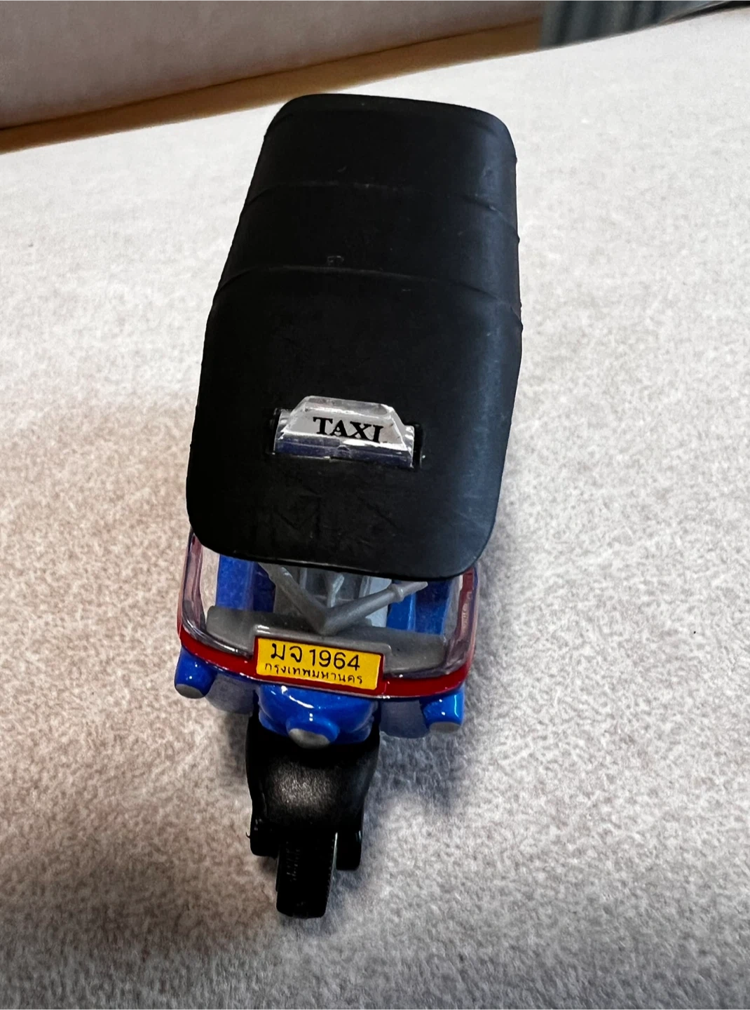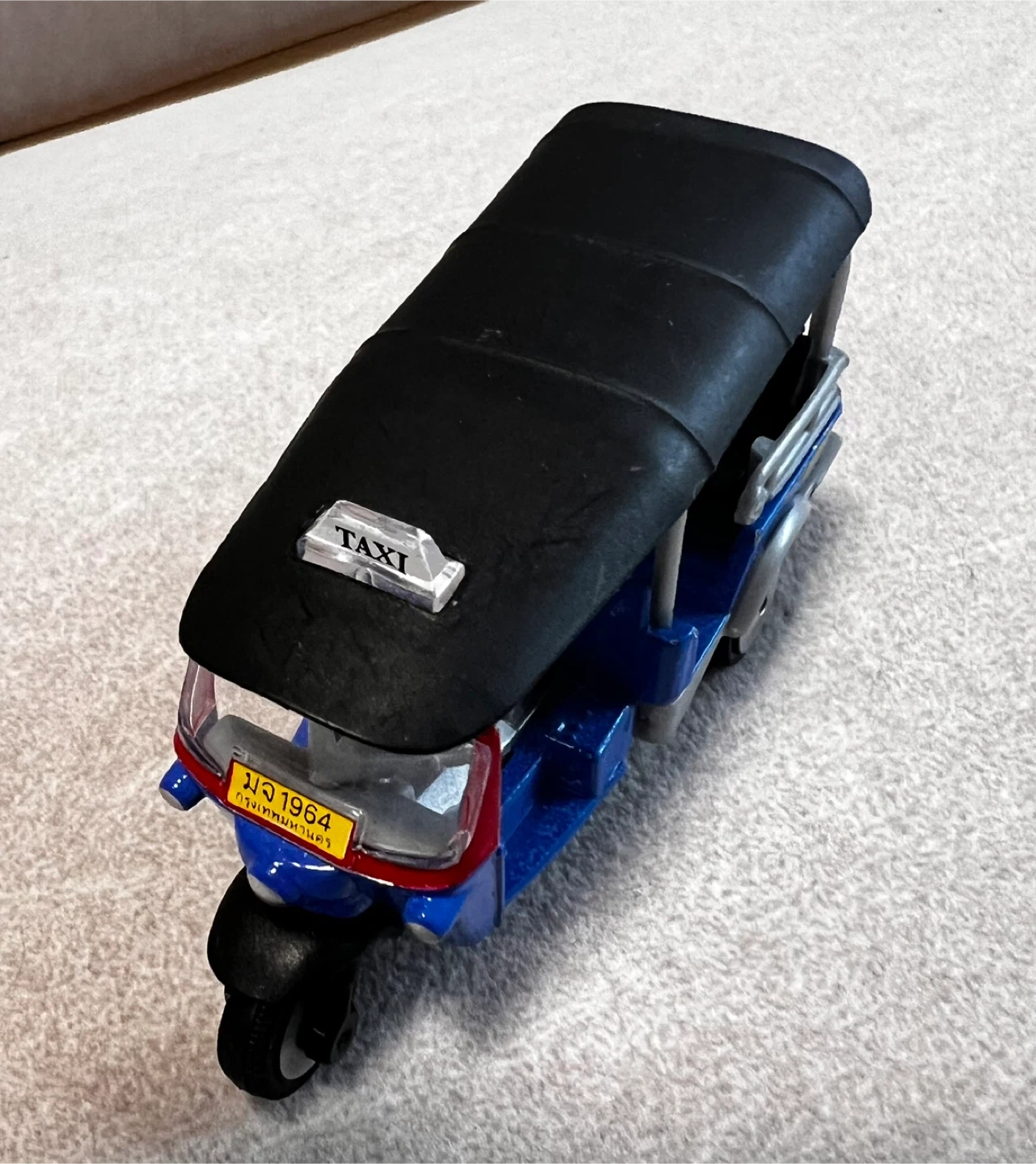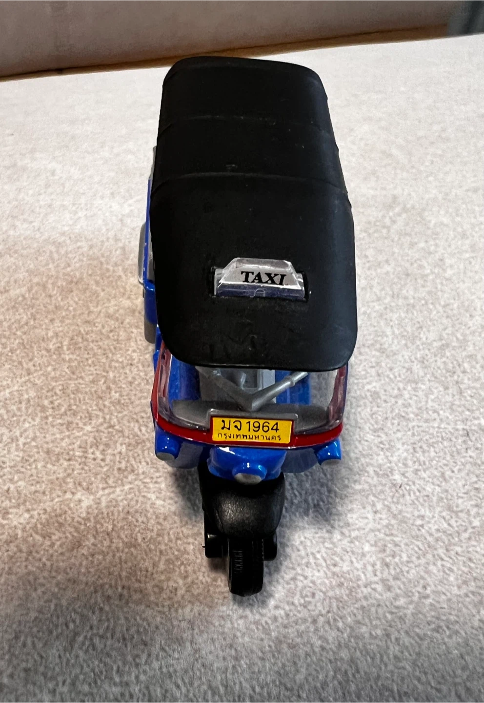 タイの三輪タクシーのトゥクトゥクのミニカーです。  Majorette 箱はありません。 子供が遊び、自宅で保管しておりました。 キズ・汚れ少々あります。状態は写真をご確認ください。 コメントいただければ写真を追加します。