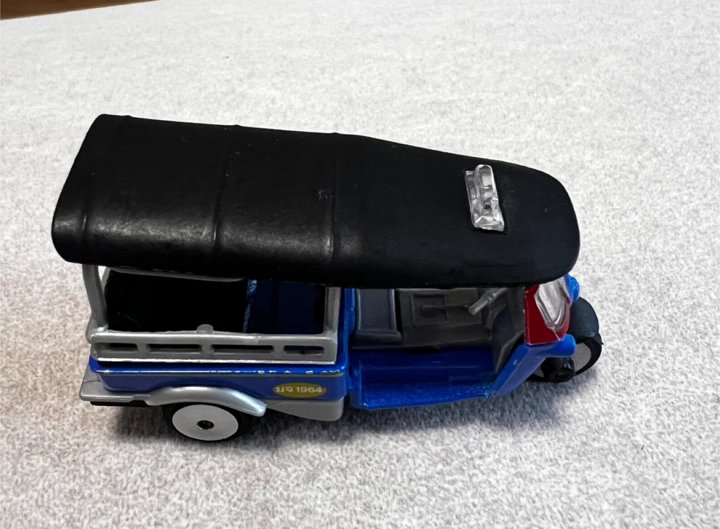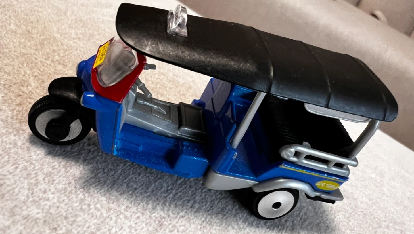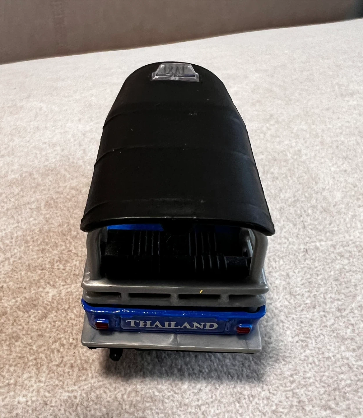 タイの三輪タクシーのトゥクトゥクのミニカーです。  Majorette 箱はありません。 子供が遊び、自宅で保管しておりました。 キズ・汚れ少々あります。状態は写真をご確認ください。 コメントいただければ写真を追加します。