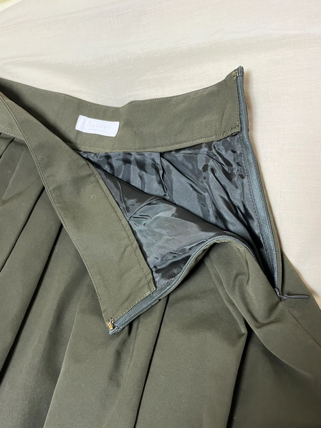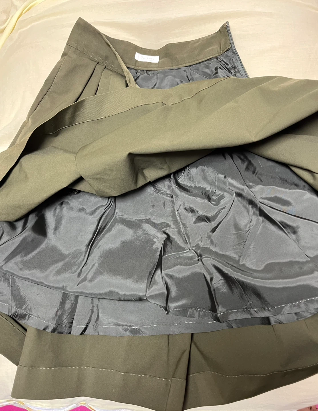 TOMORROWLANDのBallseyスカート 数回着用でオシャレ感ある肌触りがとても優しい素材のスカートです。 ハリ感のあるスカートで太めのタック(プリーツ)が入っており、立体的なシルエットですのでその日の気分に合わせた着こなしを楽しめるデザインと思います。 •ブランド: TOMORROWLAND •カラー: カーキー •スタイル: スカート •サイズ:32(普段XSの女性が着用してました) •計測 ウエスト:32.5㎝ 着丈:55㎝ 平置きの素人採寸で多少誤差あります。 自宅保管で目立った汚れ・破れ・臭いなど·はありませんが、主観での判断となります。必ず写真をご確認下さい。中古品にご理解いただきご検討ください。 ご覧いただきありがとうございます。