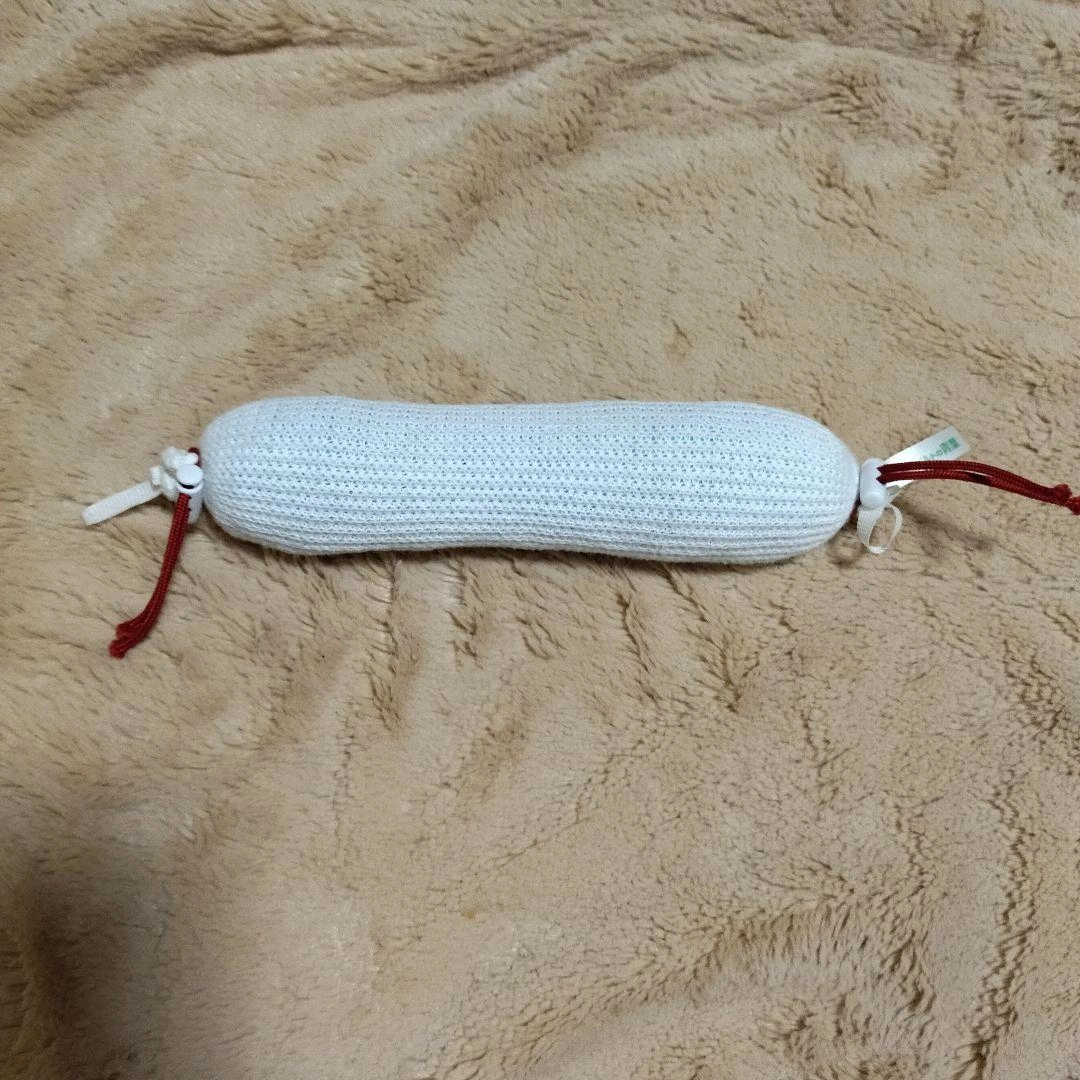 赤い紐付きのホワイトニットドーナツ型ベビー枕です。 ブランド: トコちゃんベルトの青葉 色: ホワイト 用途: ベビー枕 ご覧いただきありがとうございます。