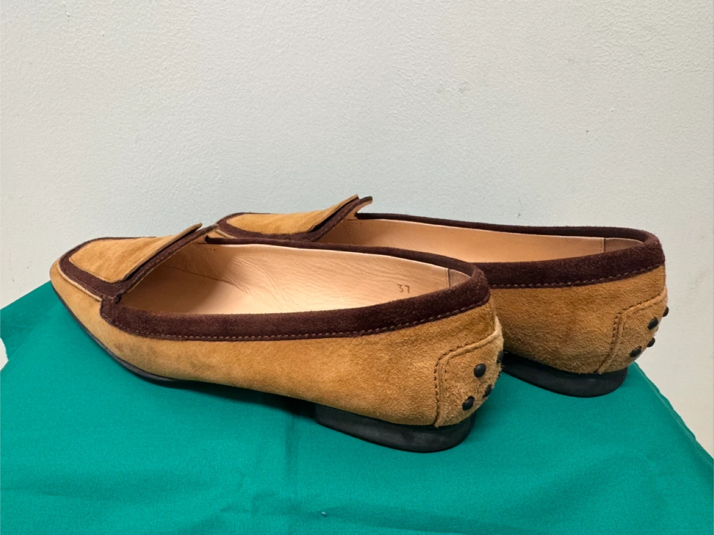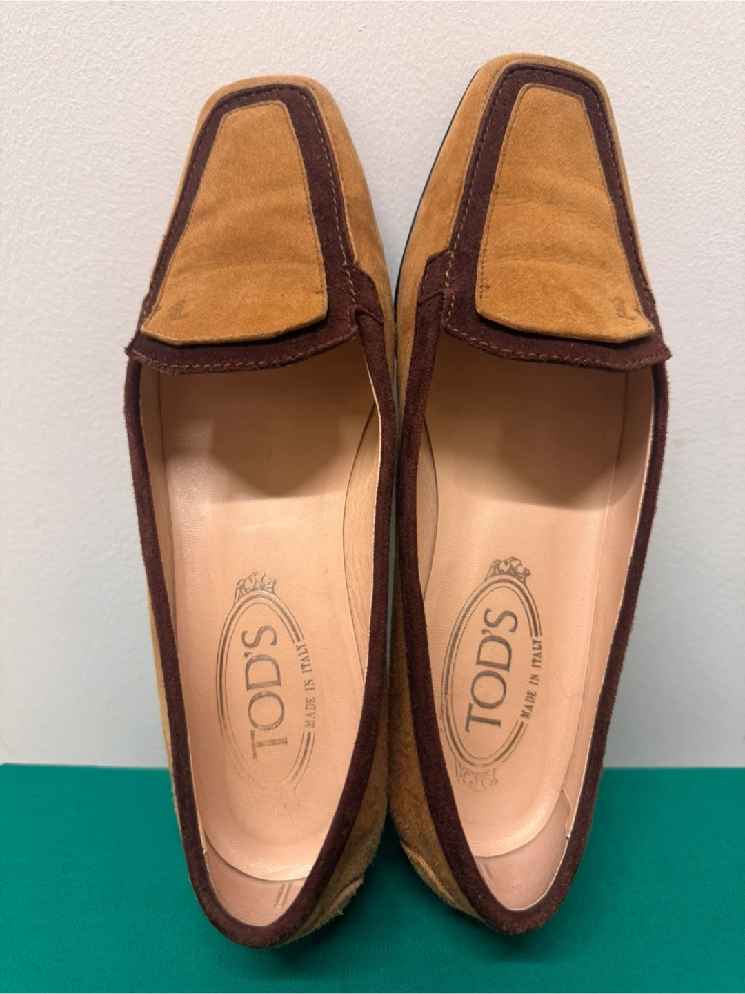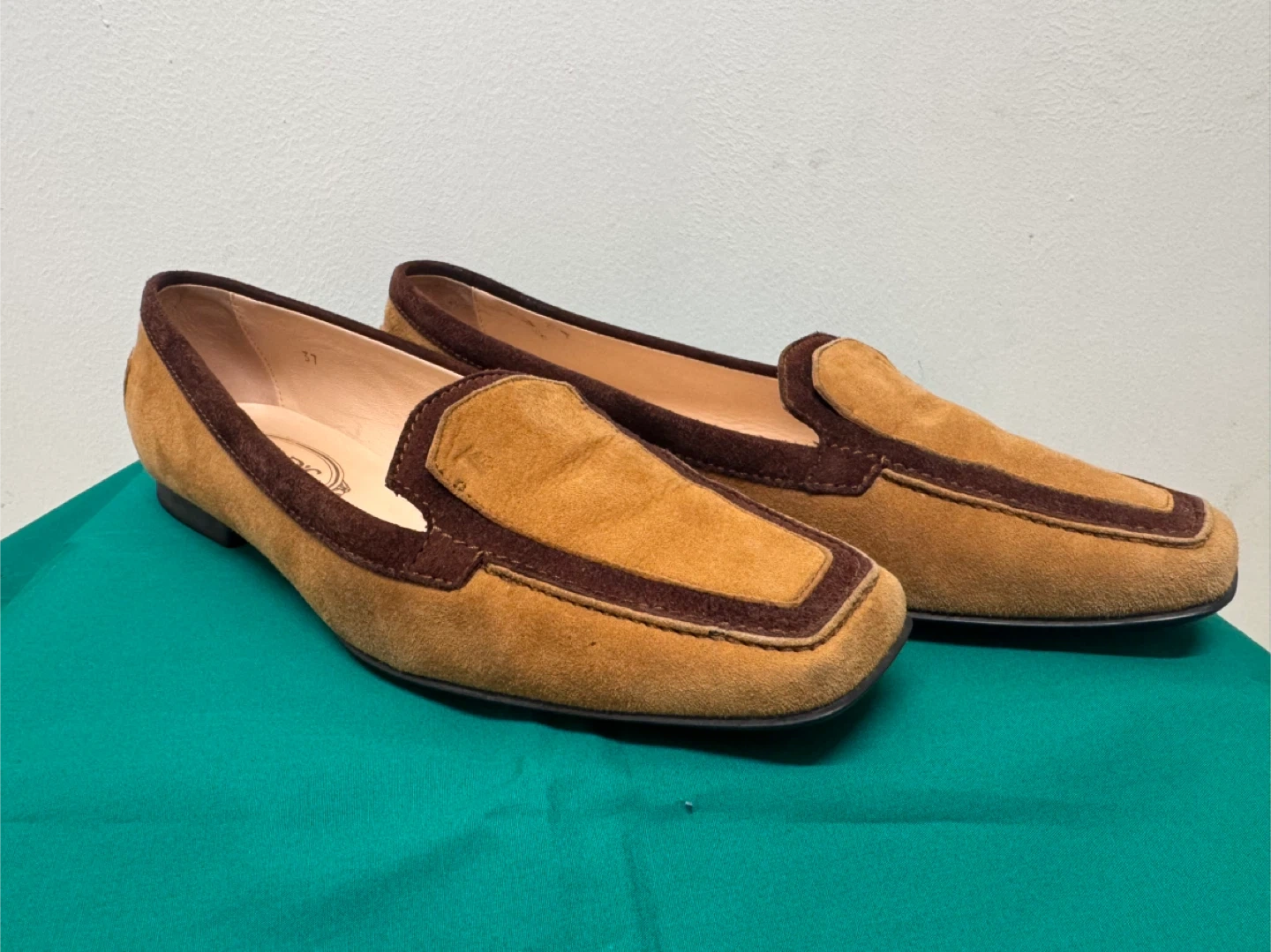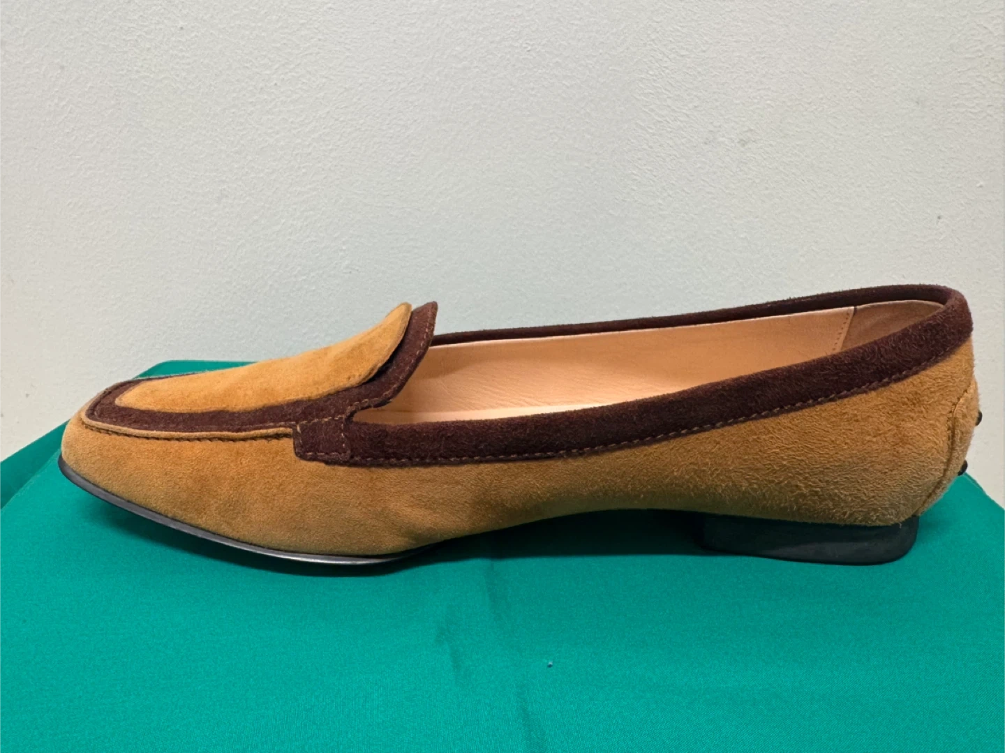 トッズのローファーです 中古品であることご了承ください 上品なイタリア製のTOD’S(トッズ)スエードローファーです。 ブラウンとキャメルのツートンカラーがクラシックで、落ち着いた印象の一足。 柔らかいスエード素材で履き心地が良く、カジュアルにもフォーマルにも合わせやすいデザインです。 サイズは 37(日本サイズ 約23.5〜24cm)。 アウトソールにはトッズのロゴ入りで、ソールの状態もとても良好です。 全体的に使用感は少なく、目立った傷や汚れはありません。 - イタリアの上質な職人仕上げを感じる高級ローファーです。 【ブランド】TOD’S(トッズ) 【製造国】イタリア製 【素材】スエードレザー 【カラー】ブラウン × キャメル 【サイズ】37(約23.5〜24cm) 【状態】中古(とても良い状態)