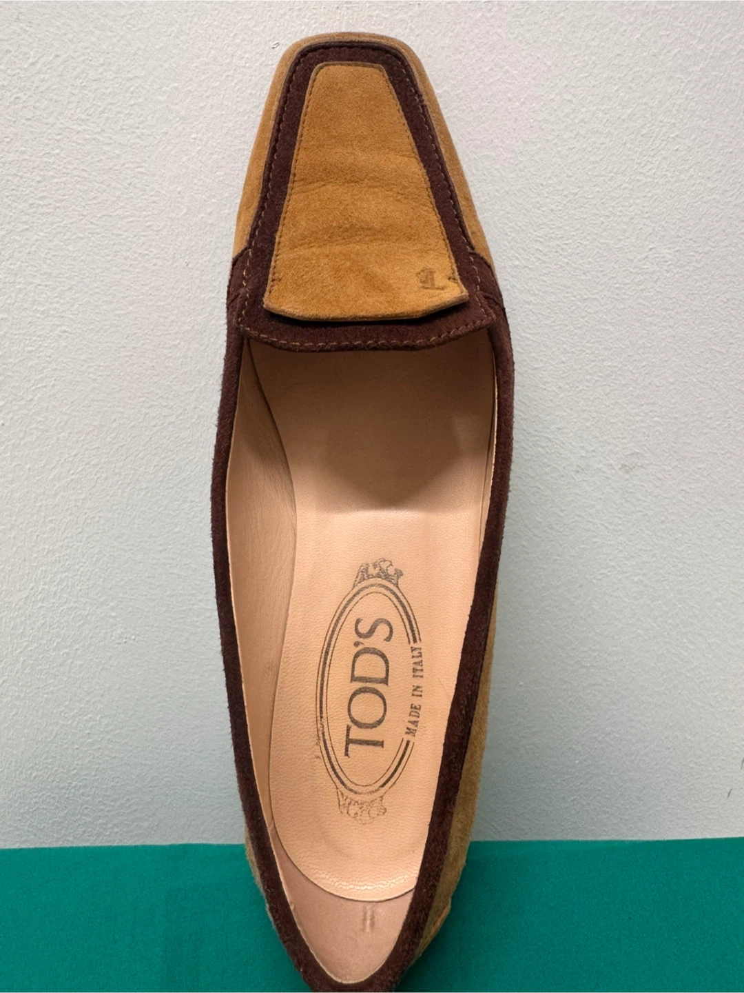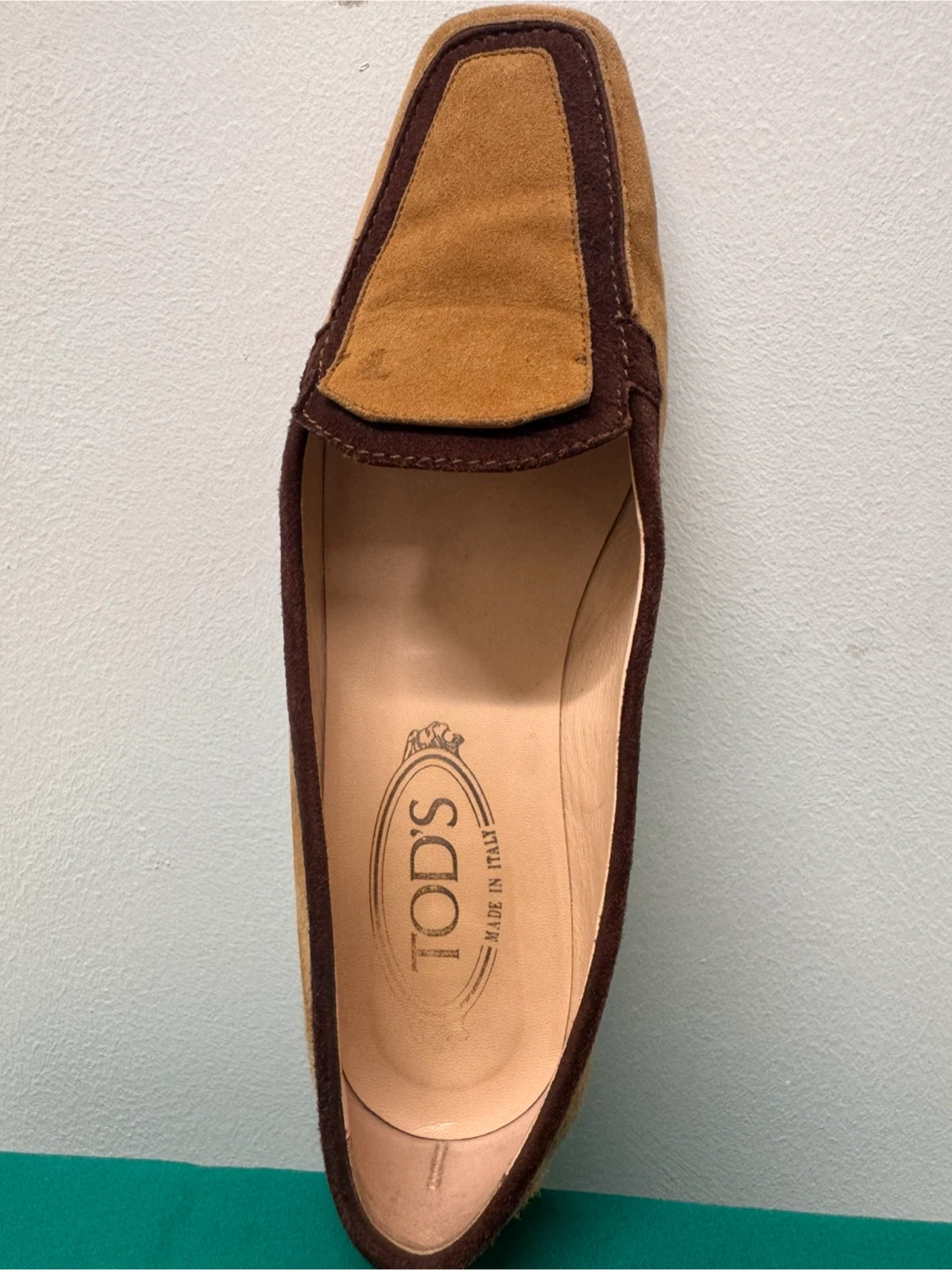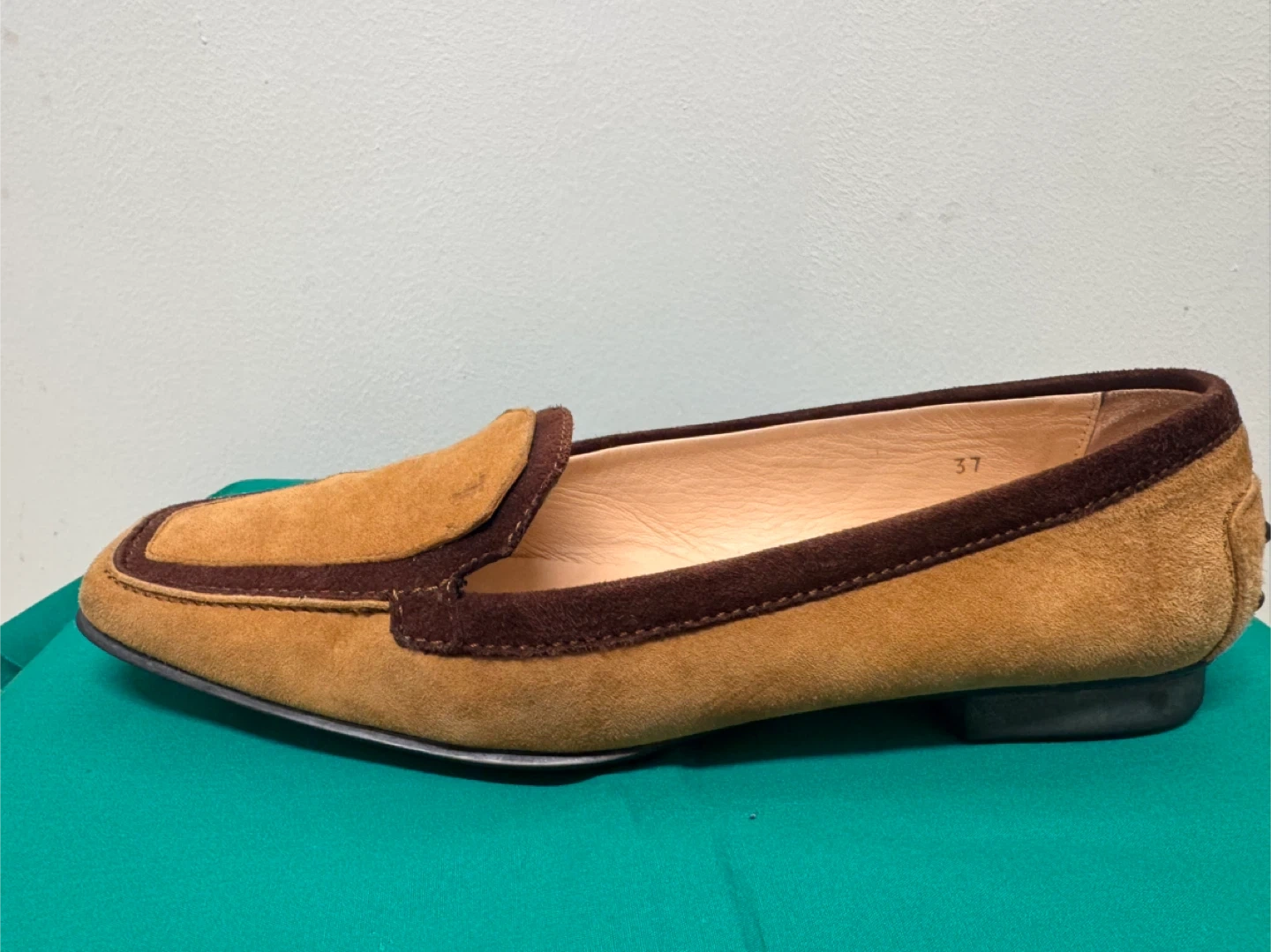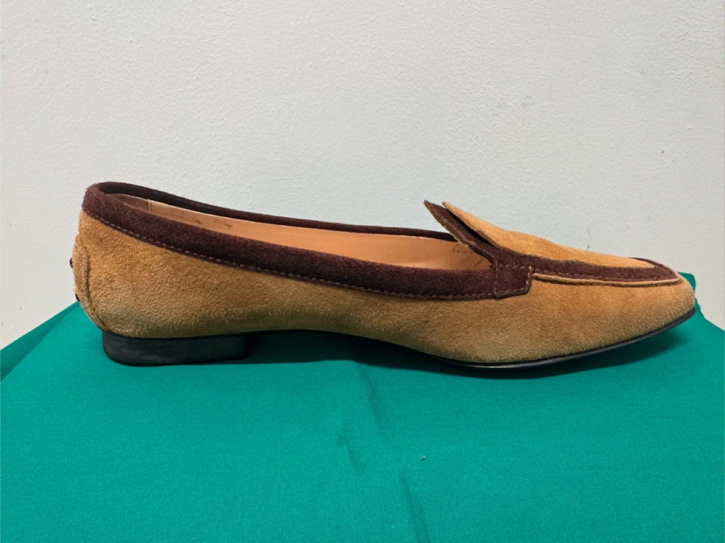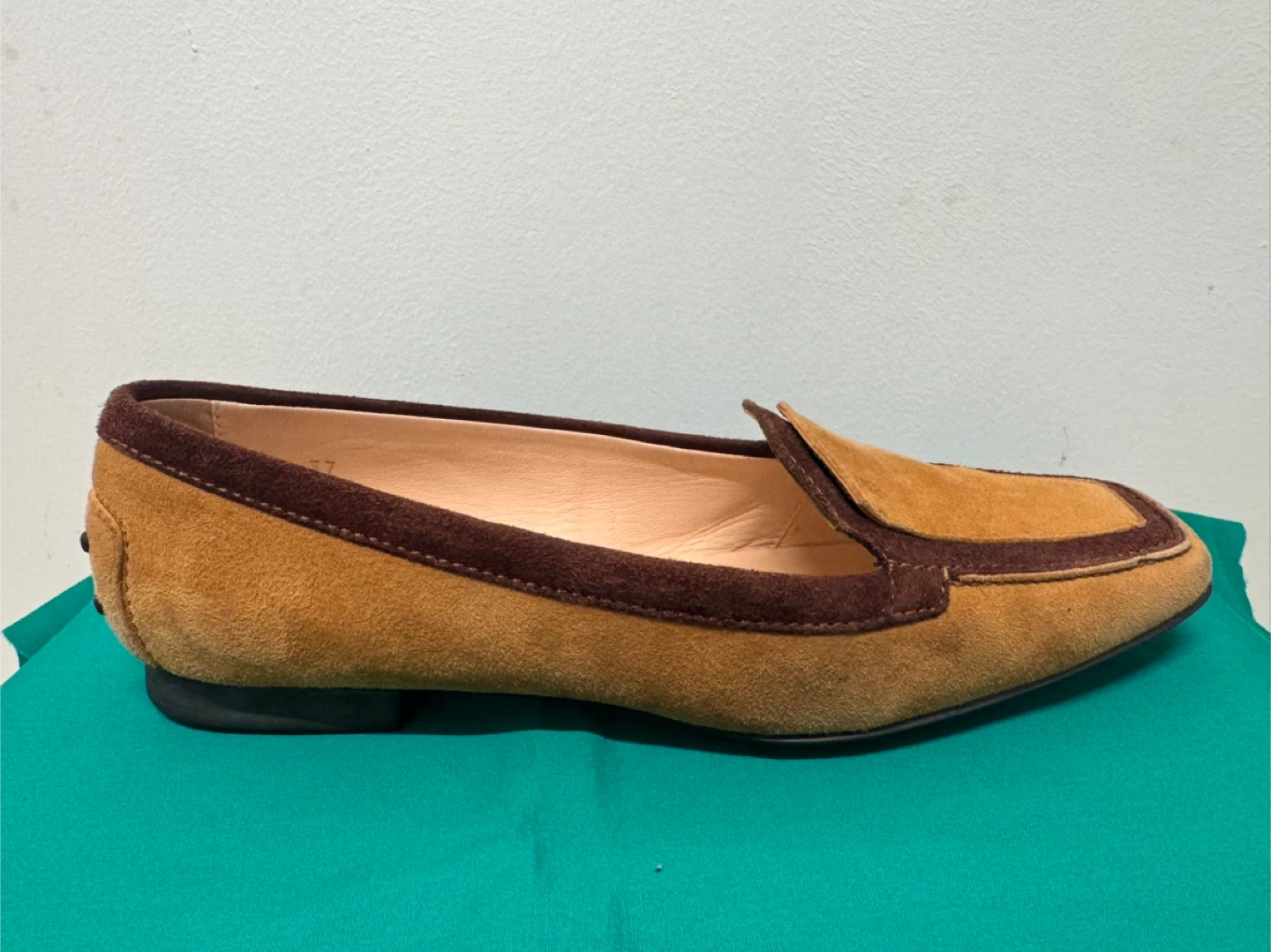 トッズのローファーです 中古品であることご了承ください 上品なイタリア製のTOD’S(トッズ)スエードローファーです。 ブラウンとキャメルのツートンカラーがクラシックで、落ち着いた印象の一足。 柔らかいスエード素材で履き心地が良く、カジュアルにもフォーマルにも合わせやすいデザインです。 サイズは 37(日本サイズ 約23.5〜24cm)。 アウトソールにはトッズのロゴ入りで、ソールの状態もとても良好です。 全体的に使用感は少なく、目立った傷や汚れはありません。 - イタリアの上質な職人仕上げを感じる高級ローファーです。 【ブランド】TOD’S(トッズ) 【製造国】イタリア製 【素材】スエードレザー 【カラー】ブラウン × キャメル 【サイズ】37(約23.5〜24cm) 【状態】中古(とても良い状態)
