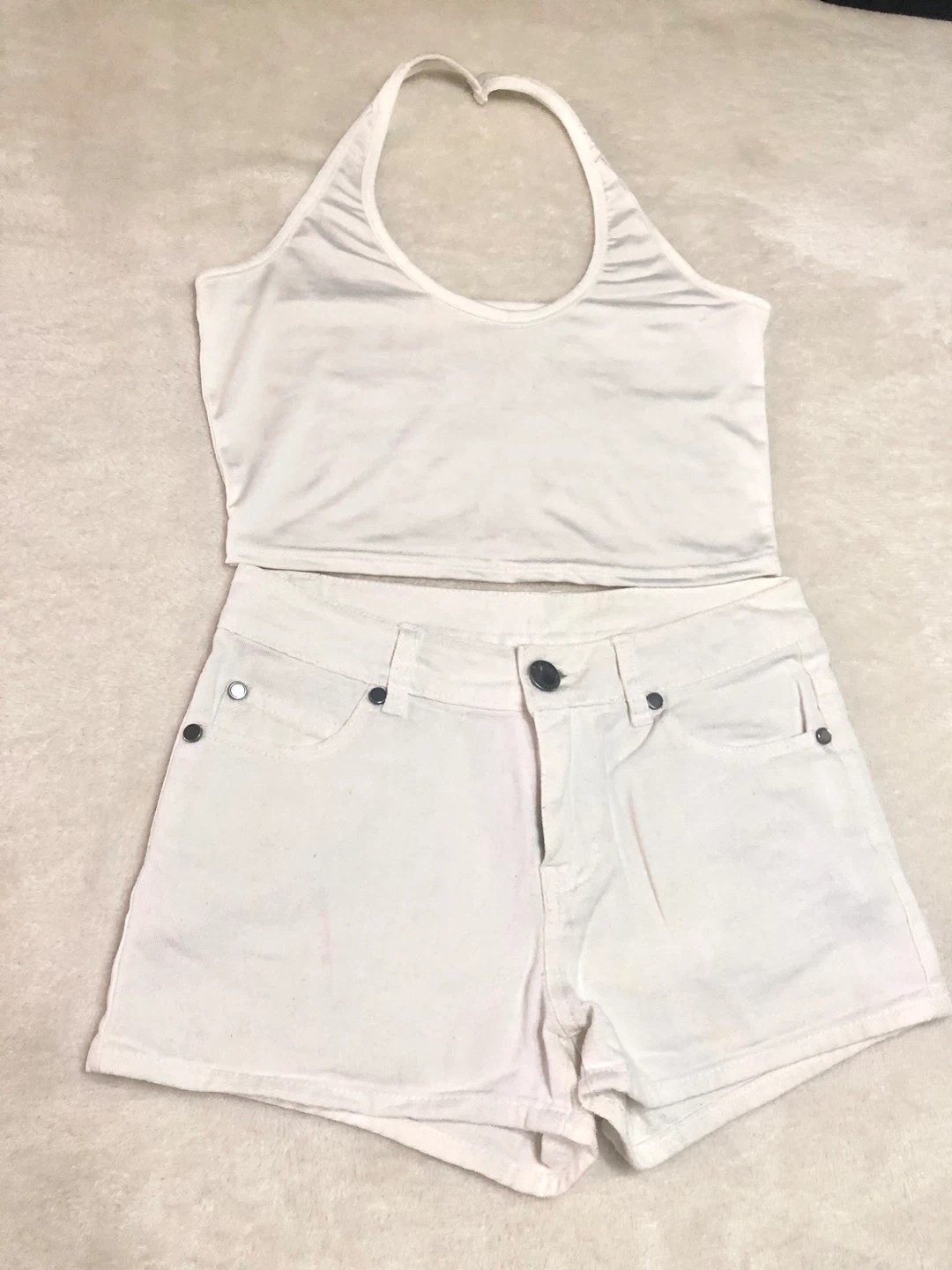 🤍✨2点セット:スパンコールトップスとショーツ、サイズM〜L