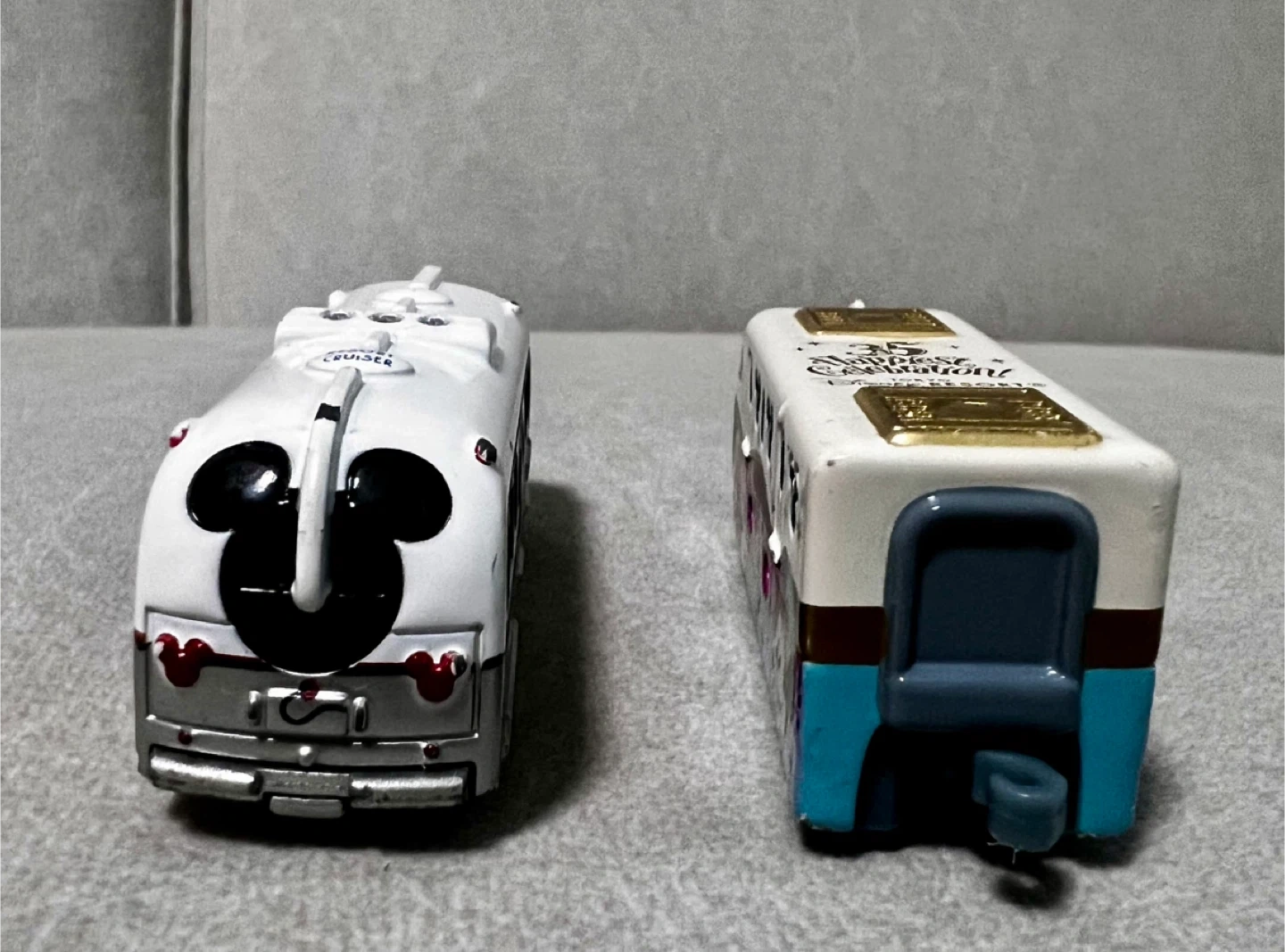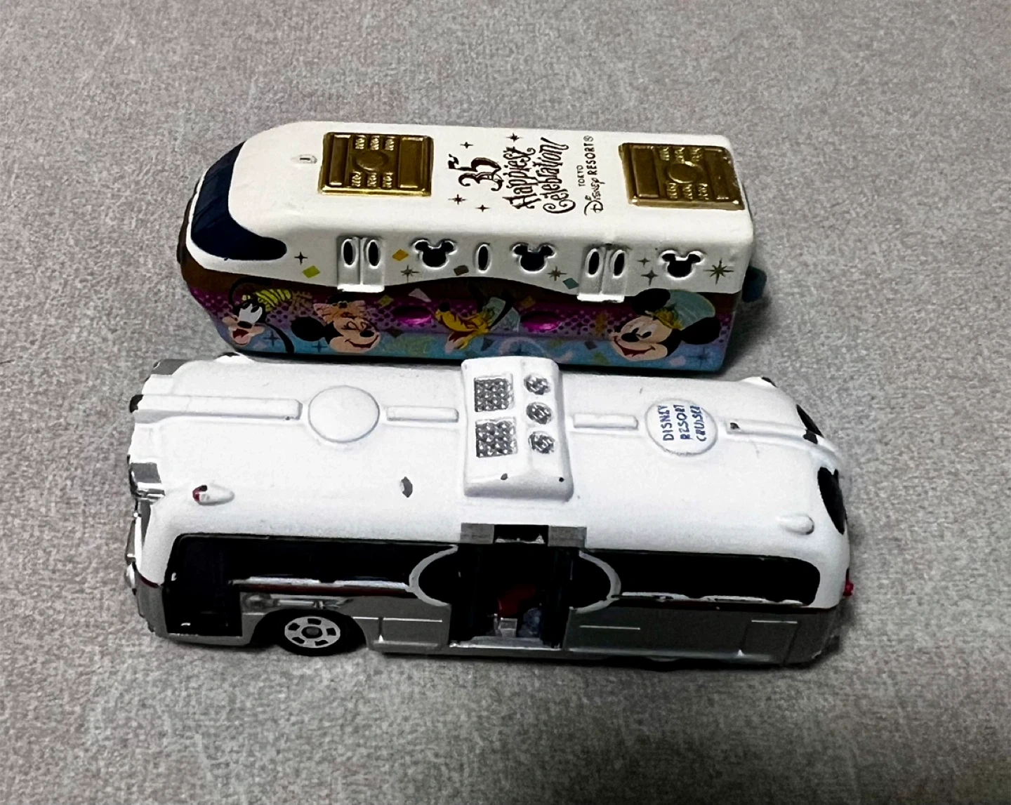 トミカ ディズニーランド リゾートライン ディズニーリゾートクルーザー セット ①リゾートライン35周年記念 箱つきですが、ダメージがあるためおまけ程度に お考えください。たたんで発送します。 ② ディズニーリゾートクルーザー 箱無し。ドア開閉確認済。 気に入っていたので①よりダメージあり。 ディズニーランドで購入。 子供が遊び、自宅で保管しておりました。 キズ・汚れ少々あります。状態は写真をご確認ください。 角は少し塗装がはげています。