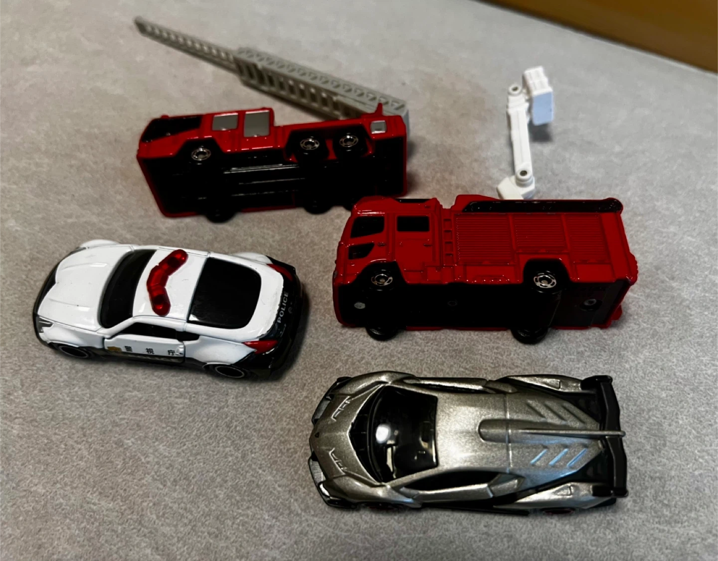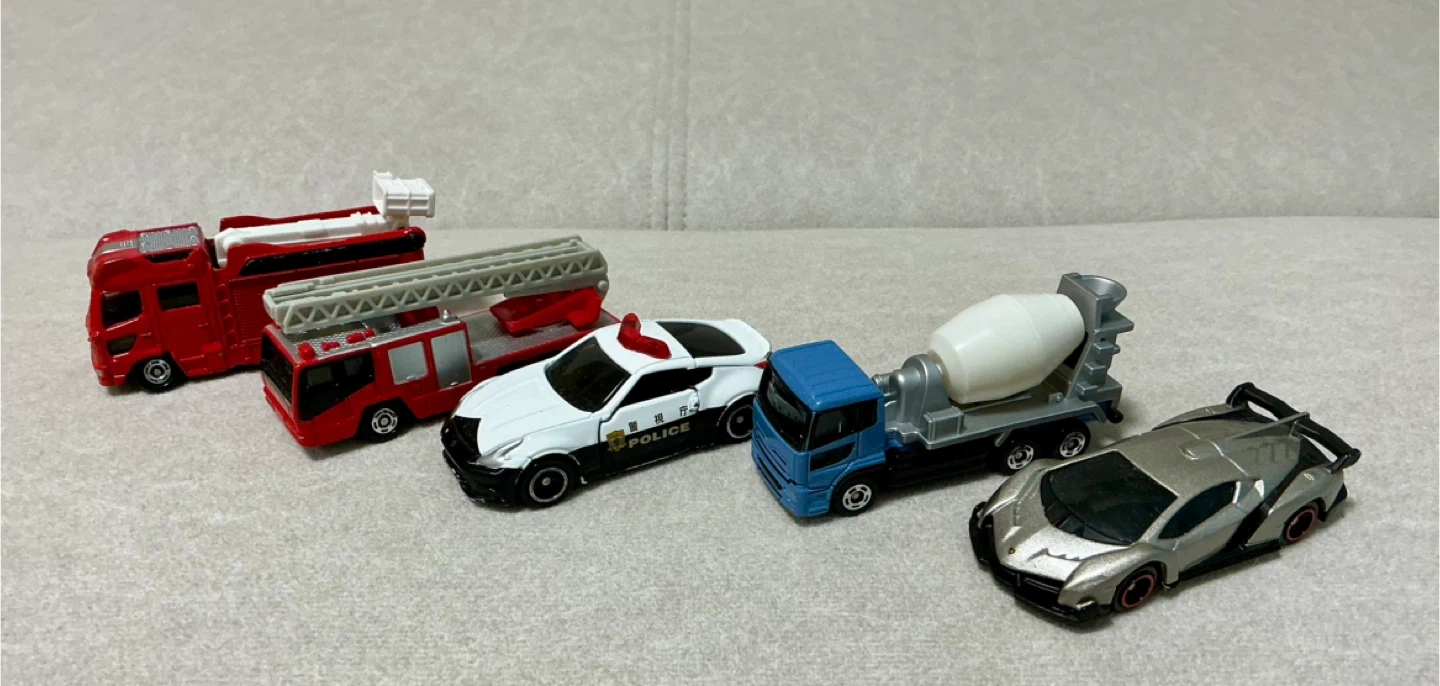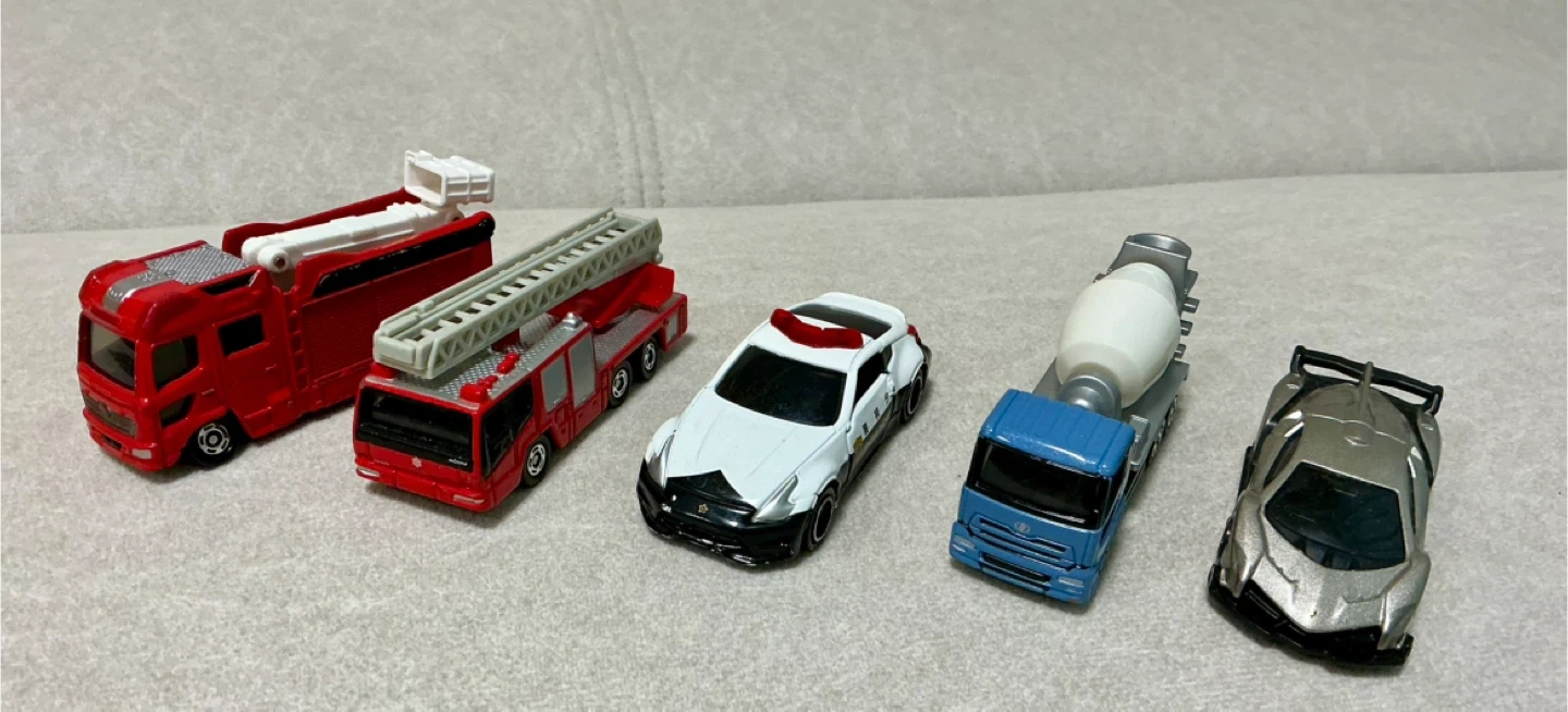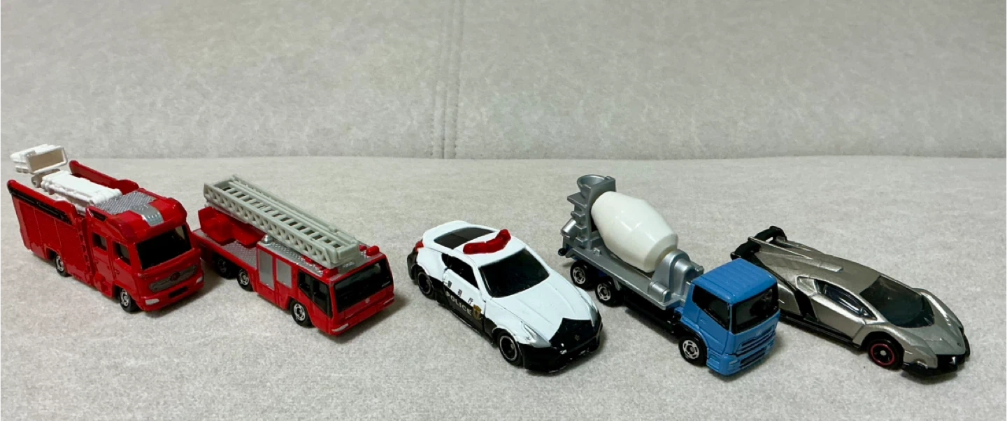 トミカ5台セットです。 ・no.31 日産ディーゼル クオン ・no.118ランボルギーニヴェネーノ カラー:シルバー *ランボルギーニ社の創立50周年を記念した スペシャルモデル ・no.61 パトカー(日産フェアレディZニスモ) 左右ドア開閉 ・no.108 日野 はしご付消防車(モリタ スーパージャイロラダー) はしご伸縮・上下・旋回 ・no.119 モリタ消防ポンプ自動車MVF はしご伸縮 子供が遊び、自宅で保管しておりました。 キズ・汚れ少々あります。状態は写真をご確認ください。 コメントいただければ写真を追加します。