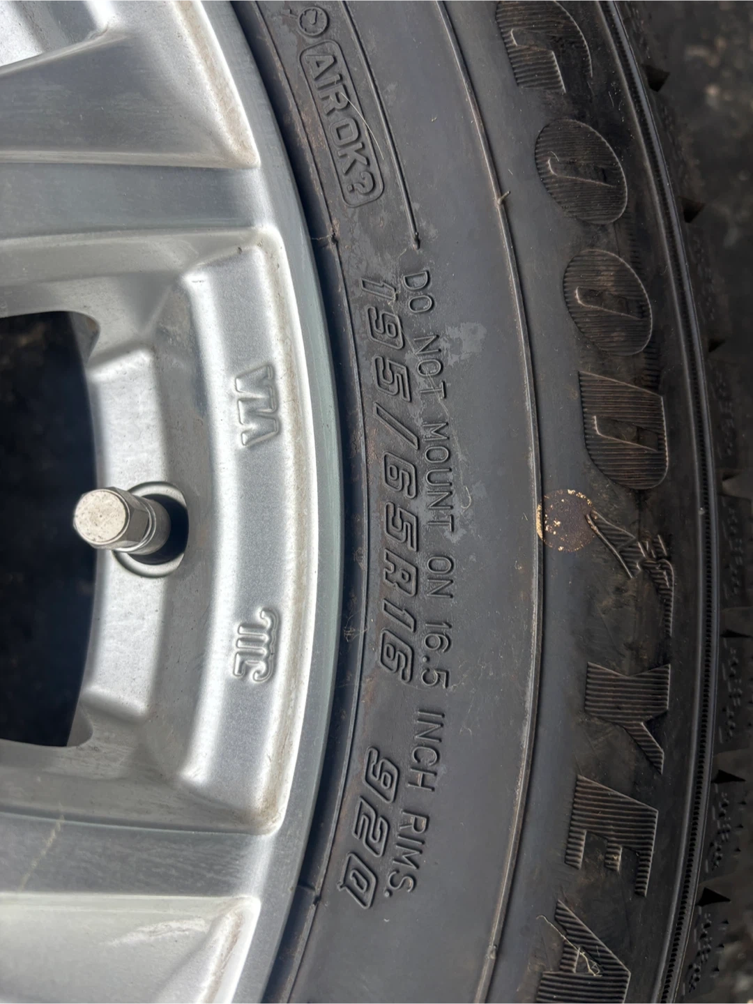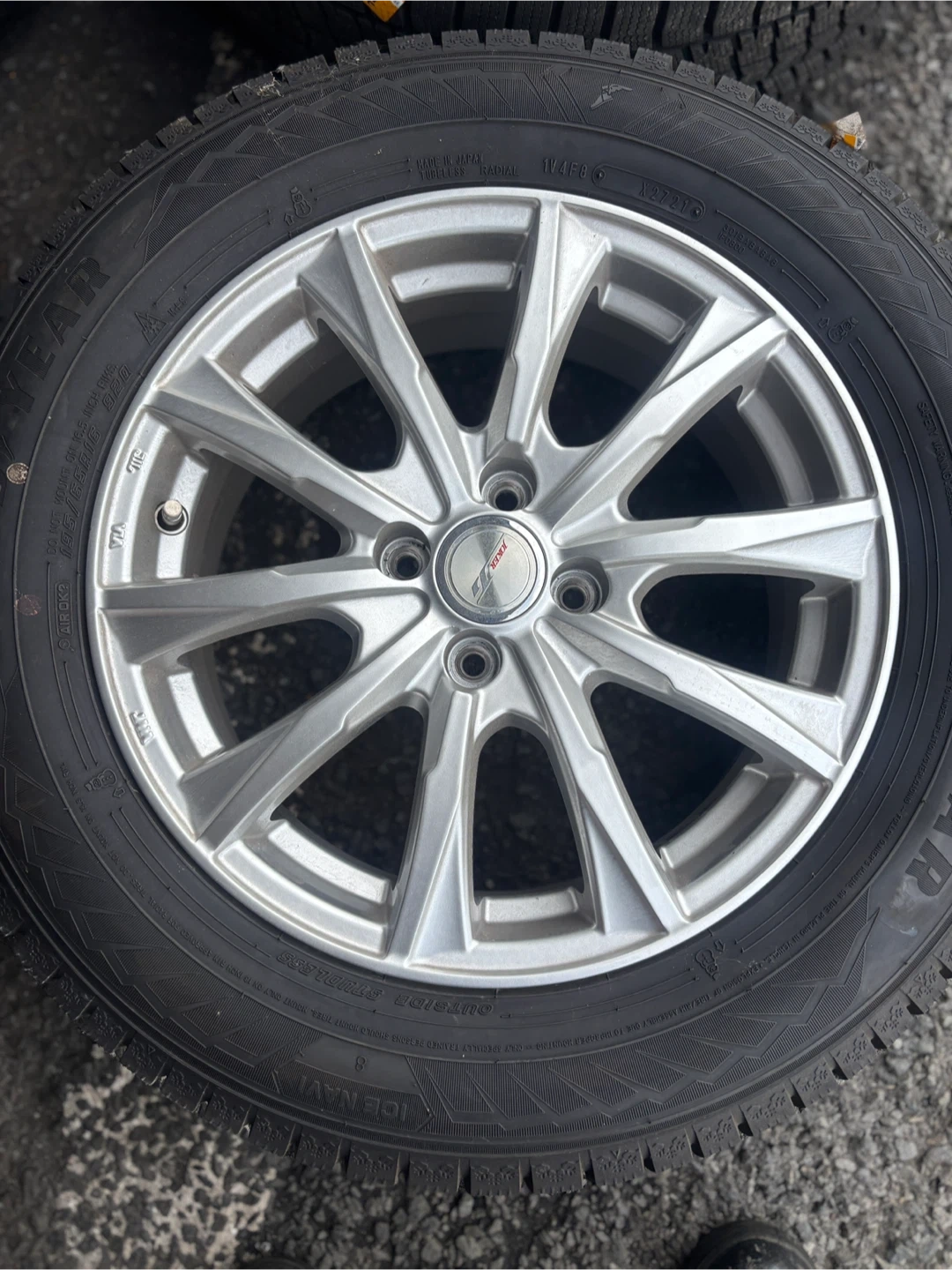 グッドイヤーのスタッドレスタイヤとホイールのセットです トヨタライズから取り外したものです 【情報】 ブランド:グッドイヤースタッドレスタイヤ タイヤサイズ:195/65R16 ホイールサイズ:16インチ 製造年週:X2721(2021年) 【状態】 使用感ありワンシーズンだけ使ってましたので、山かなりあります。もちろんオイルキャップ写真の通り傷はありません。車をチェンジしましたので出品します。 溝は写真でご確認ください。 中古品であることご了承ください