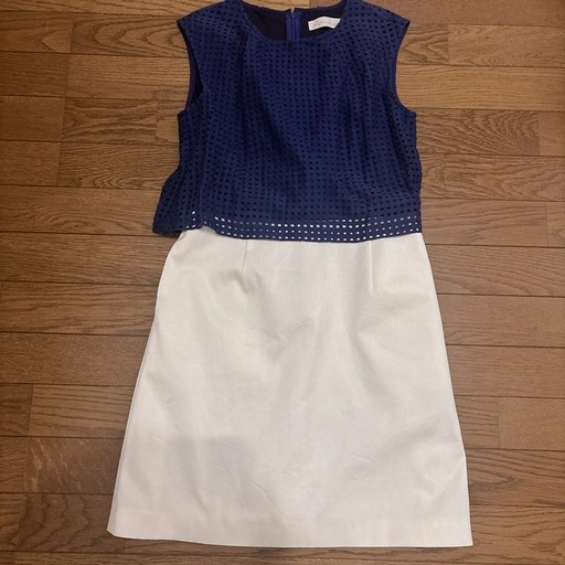 上品な印象のレース切替ワンピースです。 トップス部分はブルーの格子レース生地、スカート部分はアイボリーのしっかりした素材です。 1枚でセットアップ風に見えるデザインで、結婚式・二次会・お食事会などに。 着用回数少なく、目立つ汚れやほつれはありません。 裏地付きで透けにくく、シルエットも綺麗です。 ブランド:31 Sons de mode(トランテアン ソン ドゥ モード) カラー:ブルー × アイボリー サイズ:38 状態:美品 ご希望の方はお気軽にご連絡ください。