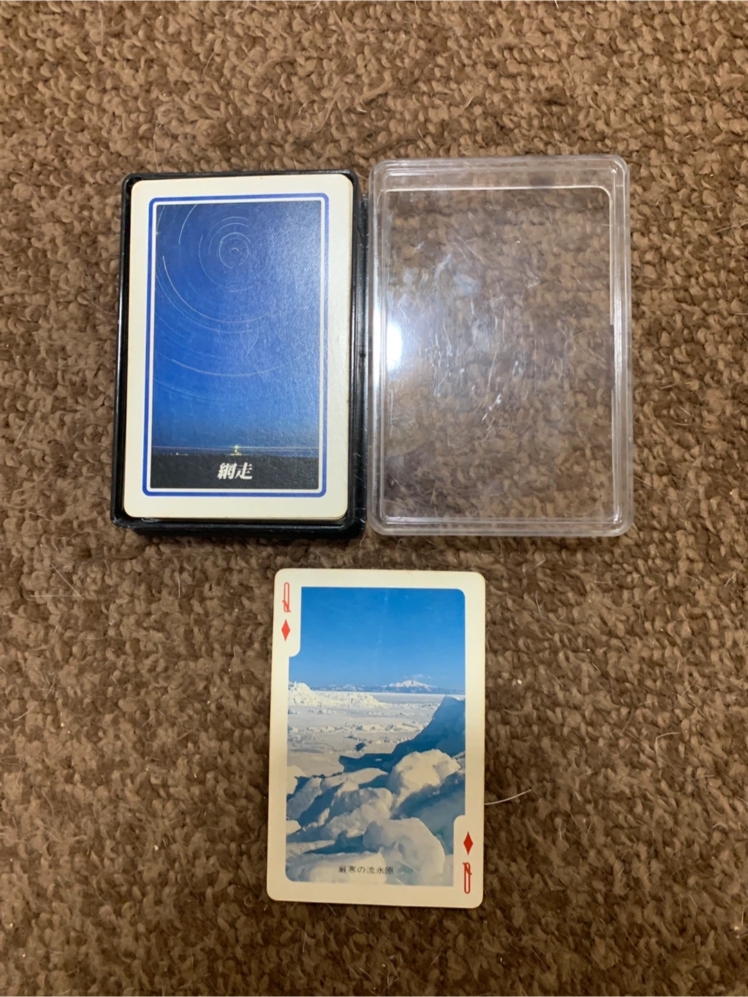 網走で購入したトランプです ・色:青、白、黒 ・状態:ケース入り 中古品であることをご了承ください。