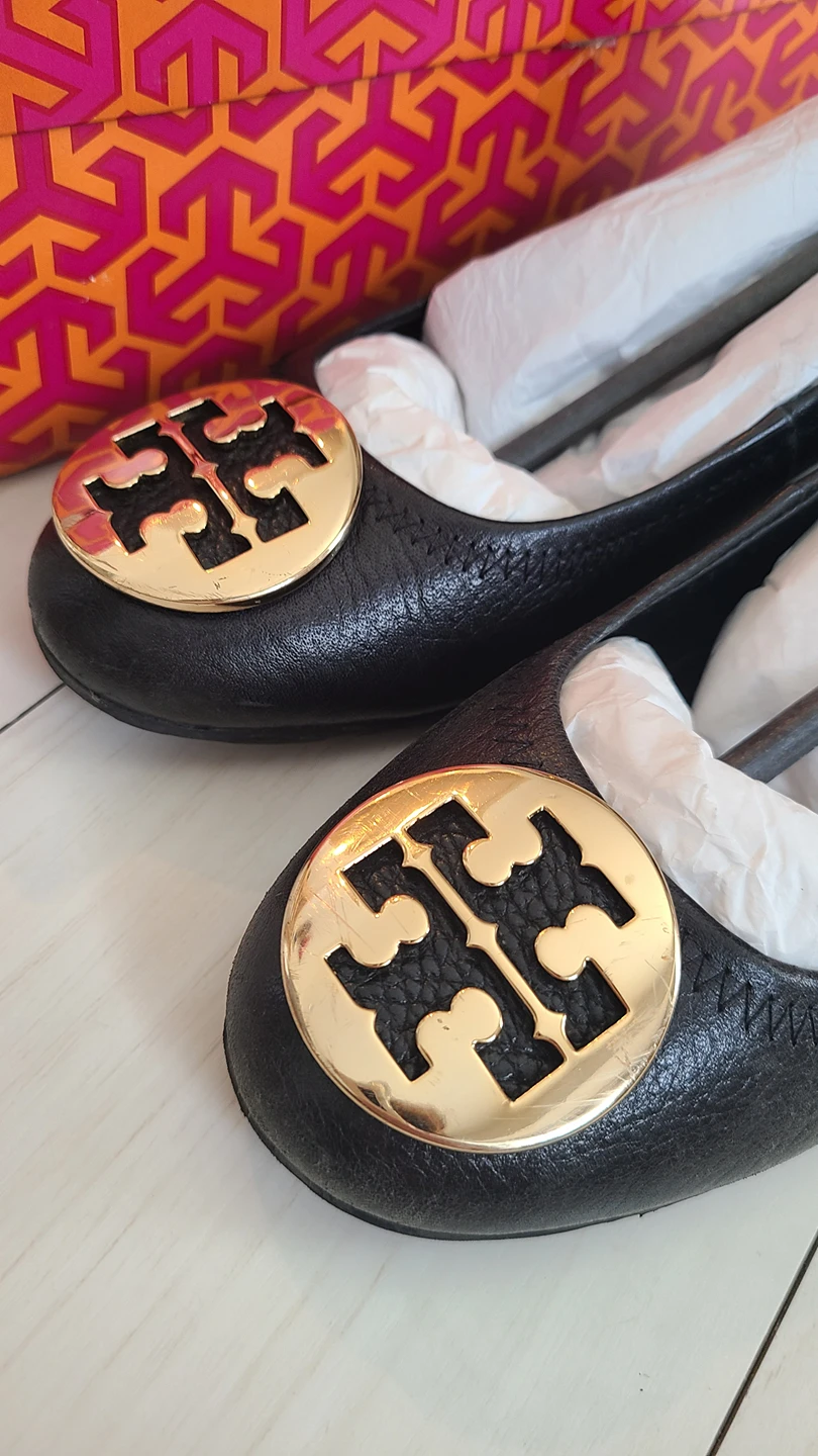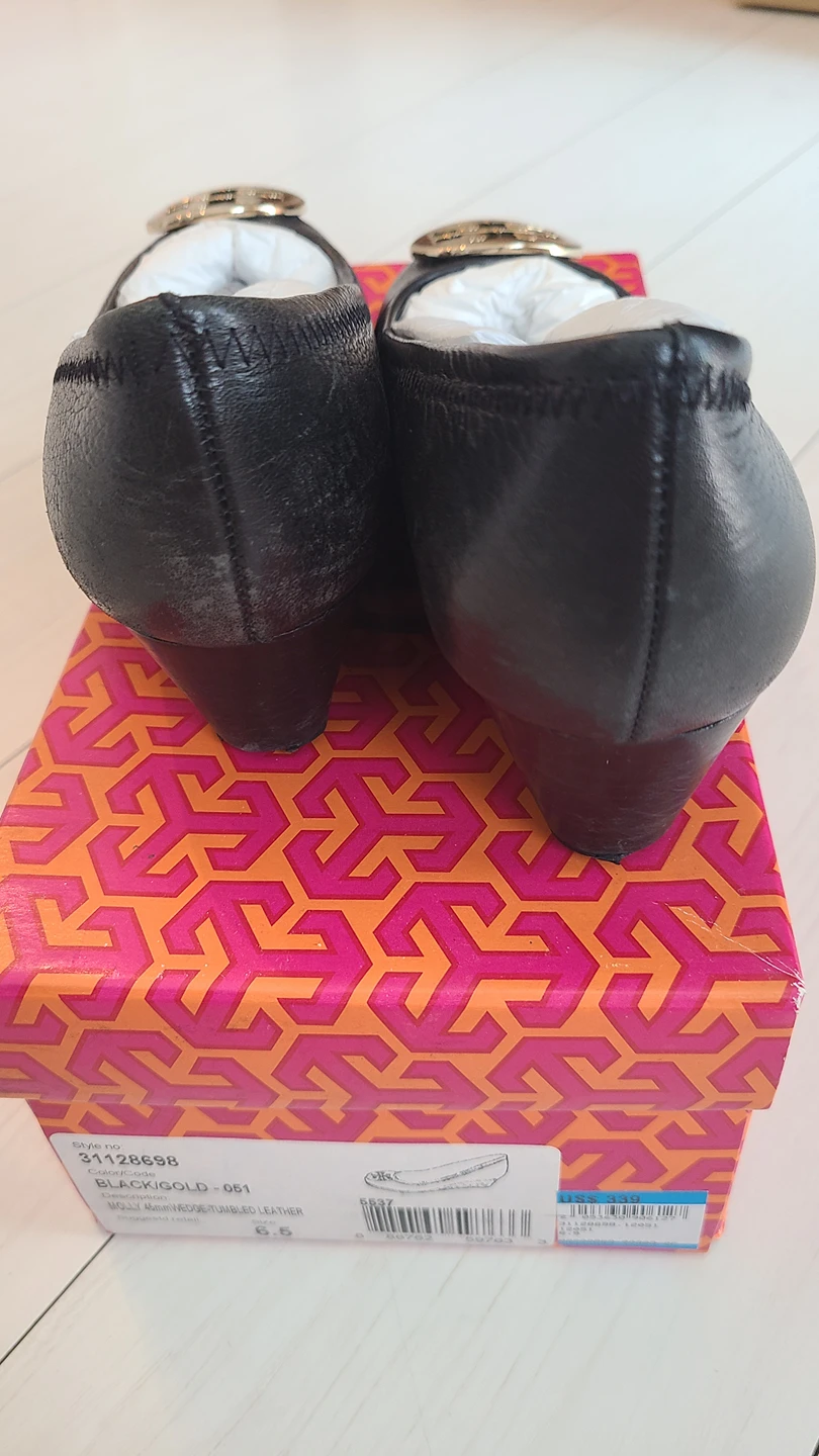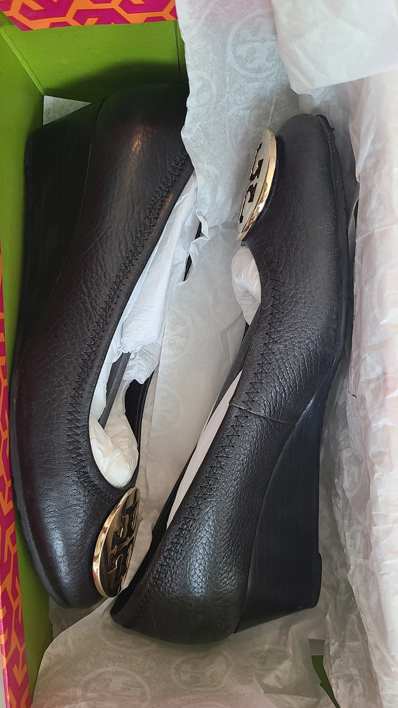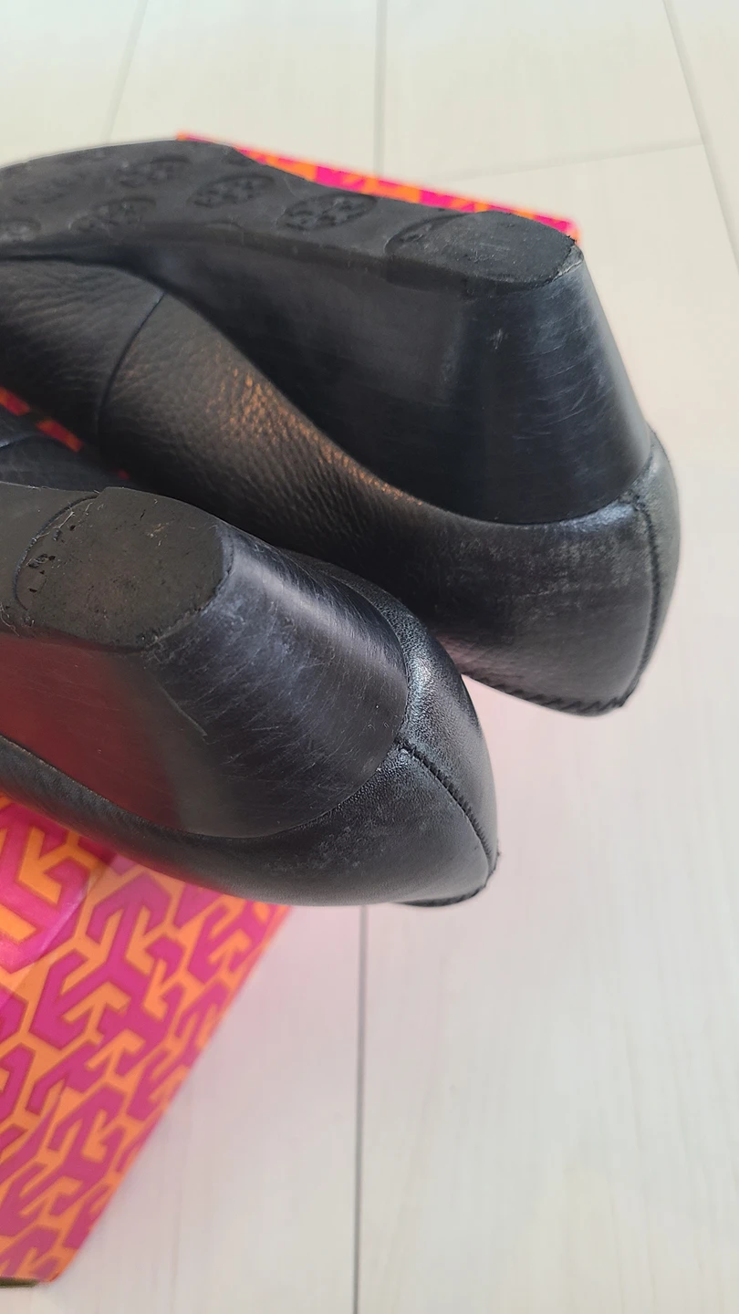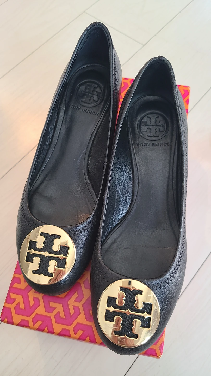トリーバーチ Tory Burch パンプス、革 ウェッジソール 4cm サイズ : 24cm us6.5 カラー : ブラック 数年前に購入しました。 免税店でUS$339でした。 かかとやソールにややキズがあります。 写真にてご参照くだだい。