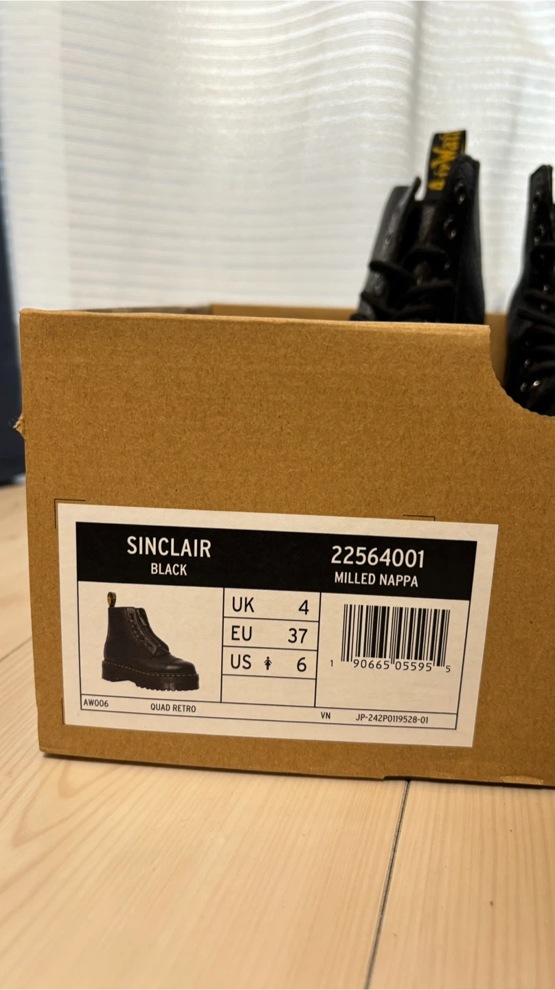 ドクターマーチンのSINCLAIRジャングルブーツです。 【情報】 ブランド:ドクターマーチン モデル:SINCLAIR カラー:ブラック サイズ:UK4, EU37, US6 型番:22564001 【状態】 使用感はありますが、箱保管していた為大きく目立つ傷や汚れはありません。 【付属品】 箱、ジップパーツ、手入れクリーム(新品) ⭐︎中古品であることをご了承ください。 ⭐︎受け渡し場所は調整可能です