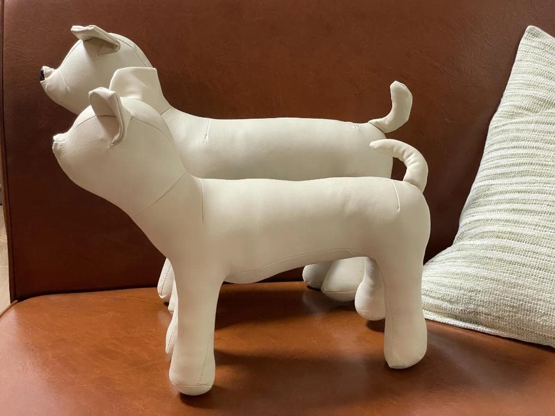 ハンドメイドお洋服用のマネキンやお店のディスプレイ・インテリアにも。 ※使用しておりませんが、自宅保管期間が長くなってきたので未使用に近いにしています。 素材:PUレザー サイズ: 体高(背中から) 24cm/体長 31cm/首周り 23cm/着丈 24cm ※素人採寸です。 4.5枚目はS/Mサイズの比較です。 ご希望の方はお気軽にご連絡ください。