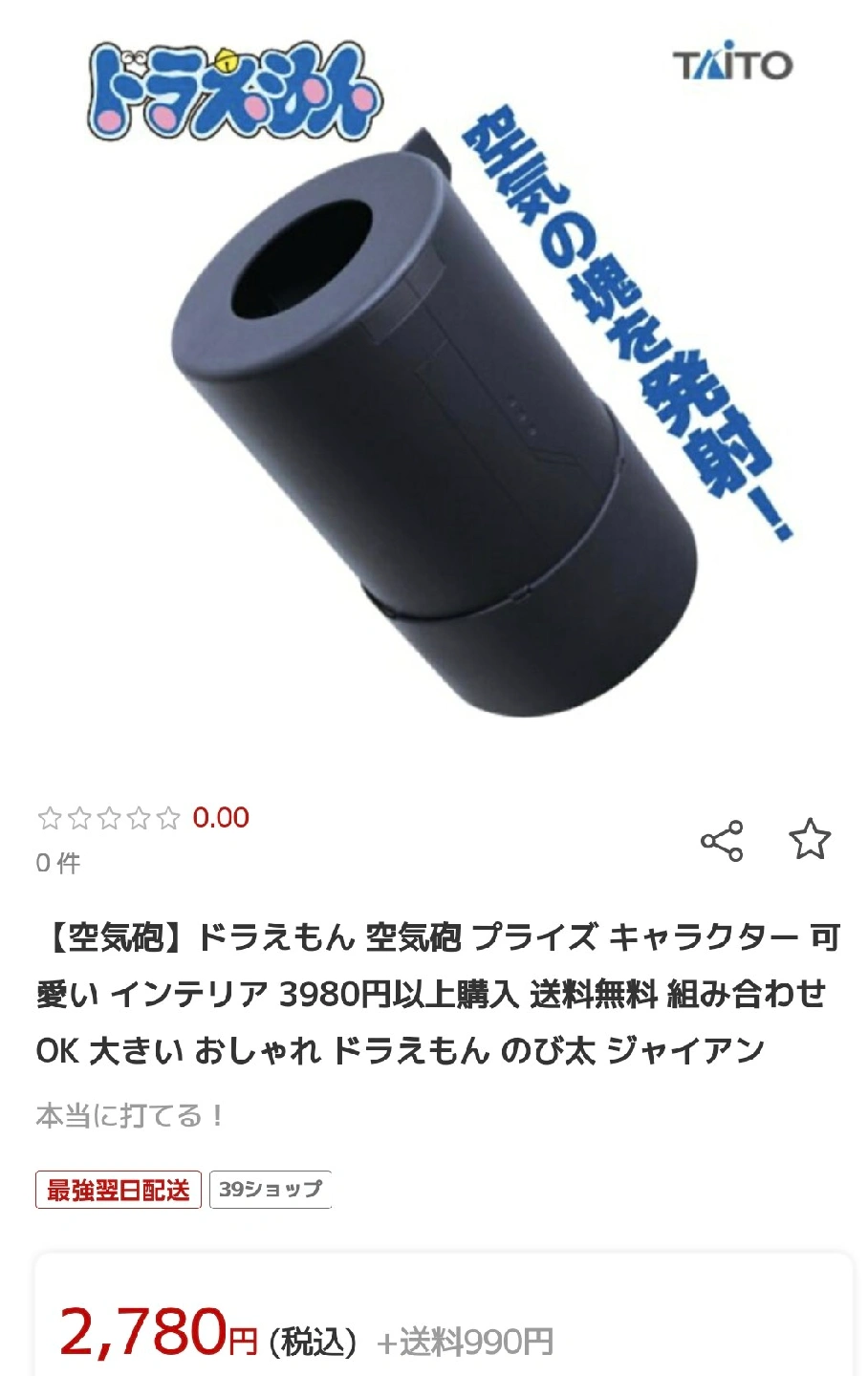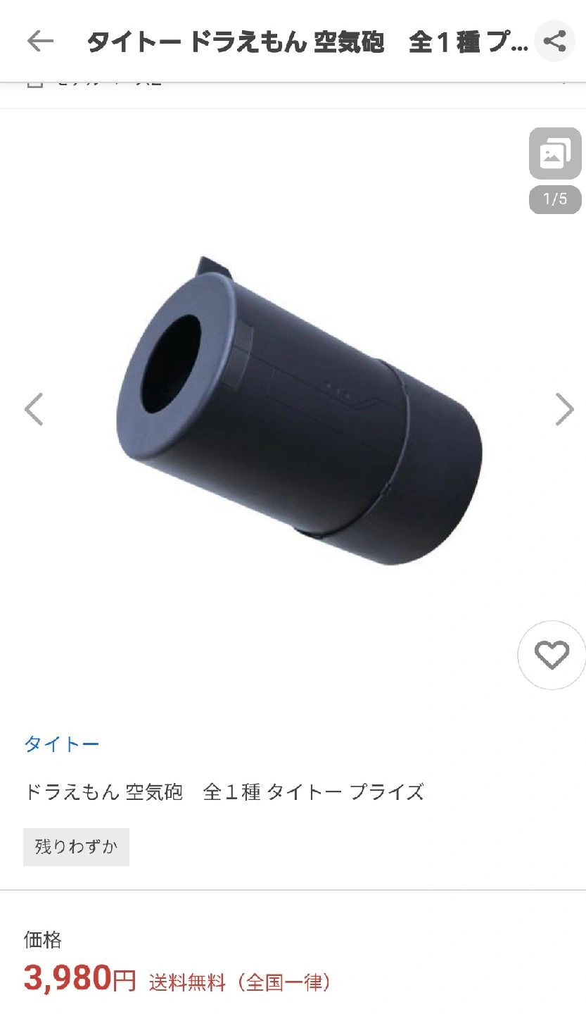あたたかさ他ECサイトで2780+送料〜3980円! 本体に傷はないと思いますが、アミューズメント景品です。開封済みで1回試しました。結構空気が出ます。自宅保管品なのでご理解頂ける方のみお願いします。 付属品は全てありますが、発泡スチロールが少し欠けています。 商品名: ドラえもん 空気砲 サイズ: 約25cm 注意事項: 対象年齢15才以上 箱サイズ約 28×18.8×18cm 空気の塊を発射します!ネタとしていかがでしょうか? ご希望の方はお気軽にご連絡ください。
