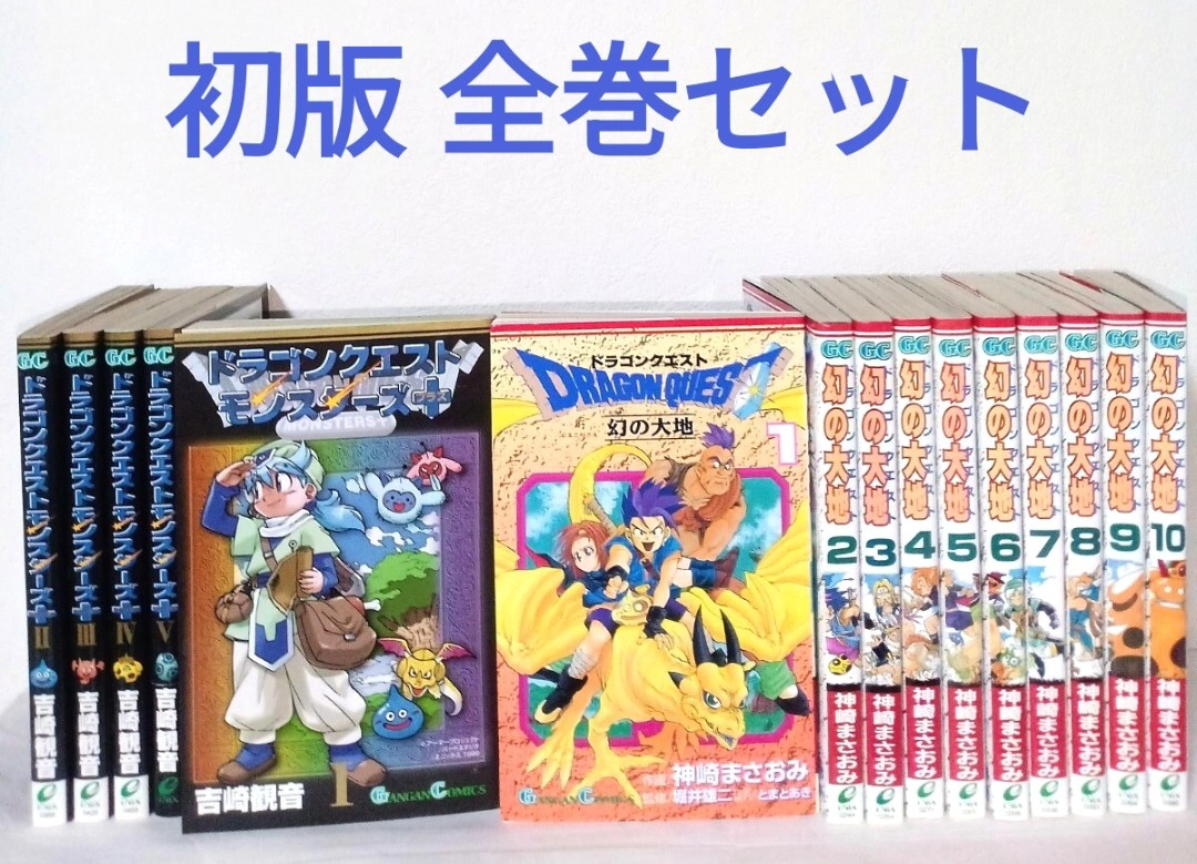 ドラゴンクエストⅥ関連漫画セット ▼ ドラゴンクエスト幻の大地 全10巻 全巻 初版 ▼ ドラゴンクエストモンスターズ+プラス 全5巻 1巻以外は全て初版 5巻帯付 著者・吉崎観音 神崎まさお 出版社・エニックス ガンガンコミックス 書店等の新刊みたく綺麗な本を好む方 神経質な方は、ご遠慮くださいませ。 古本に、ご理解のある方のみご購入下さい。 あくまで中古品なので使用に問題のない程度の多少の傷などはある物とお考え下さい。 古本は、個々様々な状態の物があります 応募券切取り、ヤケ、シミ、汚れ、ヨレ、スレ、折れ、値札、カバー角小傷み、匂い、経年劣化、等 他〜などありますが読むには問題ありません。 ですので、読めれば良いとのお考えの方で よろしくお願いいたします。 当方の出品は読める事のみを前提にしておりますので すり替え防止の為返品交換キャンセル不可の ノークレーム ノーリターンで よろしくお願い致します。