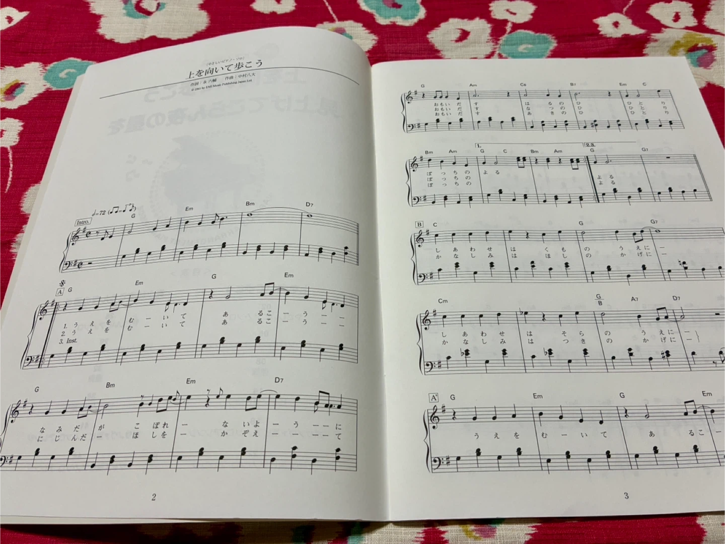 ドレミのピアノ楽譜です。 【情報】 出版社:ドレミ タイトル:上を向いて歩こう 見上げてごらん夜の星を 各曲のソロ、アレンジ、連弾、弾き語り、ボサノバ風、ジャズ風のアレンジ楽譜で、楽しいです♪ 種類:ピアノ・ピース 【状態】 使用感ほとんどなし。