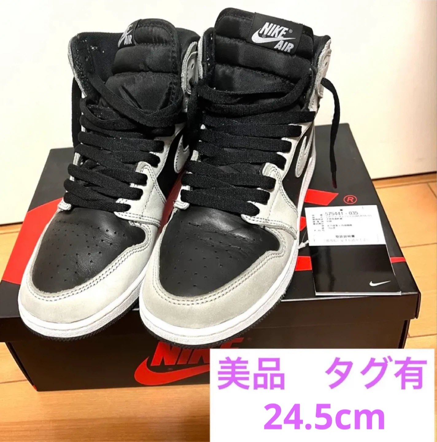 Nike GS Air Jordan 1 High OG "Shadow 2.0 使用回数2.3回の美品です。 中敷も別のを使ってたので新品です。 タグ有、箱あり サイズ24.5cm 即購入⭕️ 匿名配送⭕️ 引っ越しのため、断捨離となります。 コレクションしてたので、乾燥剤とか入れてとても状態良く保管しておりました。 他のサイトでも出品してますので、無くなり次第削除致します。予めご了承くださいませ。 ※神経質な方はご遠慮下さい。 【情報】 ブランド:ナイキ モデル:エアジョーダン1 レトロ HIGH OG GS サイズ:24.5cm 型番:575441 035 【状態】 使用感少なめ、全体的にきれい 【付属品】 箱、タグ 中古品であることご了承ください。