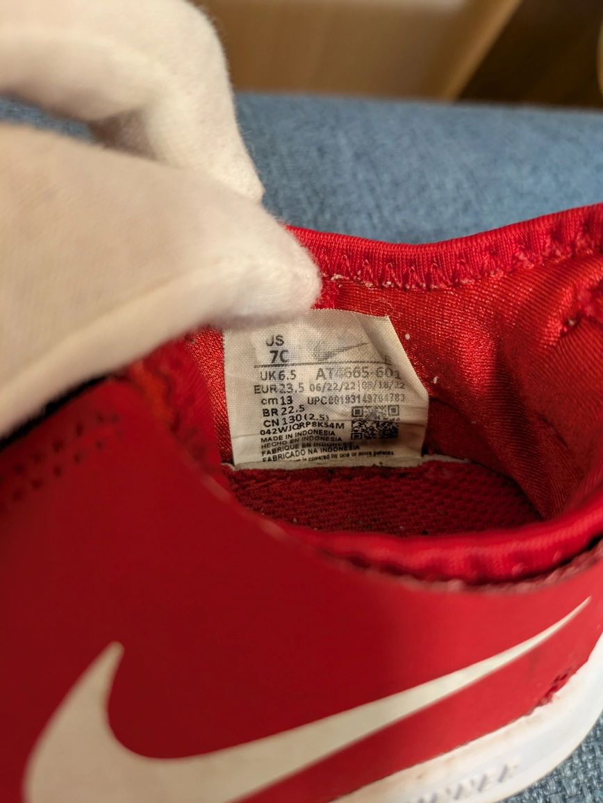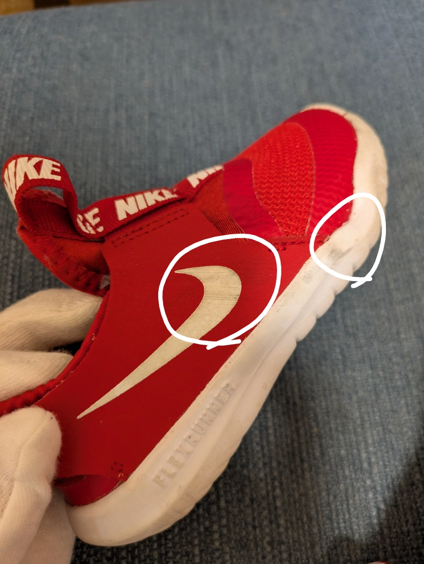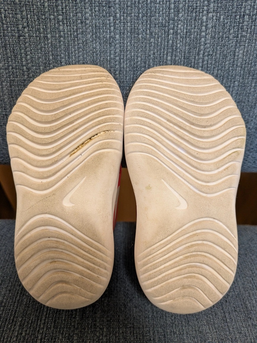 2歳の子供が10回ほど履きました。 保育園からスリッポンタイプではなくマジックテープのものにして欲しいと言われたので買い換えてから履かなくなりました。 真っ赤で可愛いです。検品して傷や汚れが見つかりましたので写真で確認してください。6枚目の写真はラベルにお名前シールを貼っていたので剥がしたところです。 ホームクリーニングの上、自宅で保管しておりました。 - ブランド: Nike - 色: レッド - スタイル: スリッポン - 特徴: 軽量デザイン - ソール: クッション性あり - モデル名: Free RN ご覧いただきありがとうございます。
