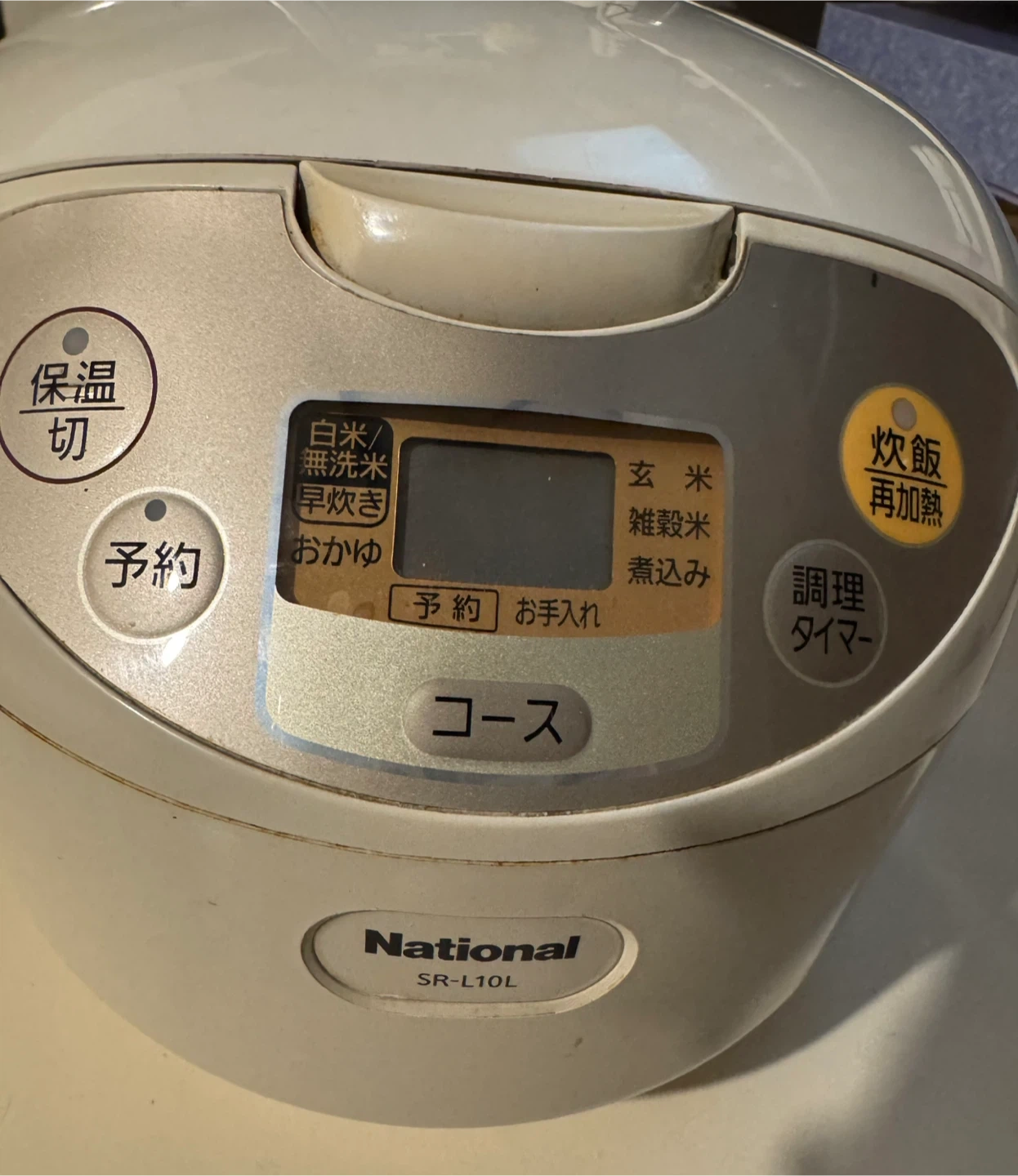 ナショナルの炊飯器です 【情報】 ブランド:ナショナル 型番:SR-L10L 【状態】 使用感ありますが、そこまでではないと個人的に思います。そして問題なく美味しく炊けます♪ 5.5合炊きです。 中古品であることご了承ください