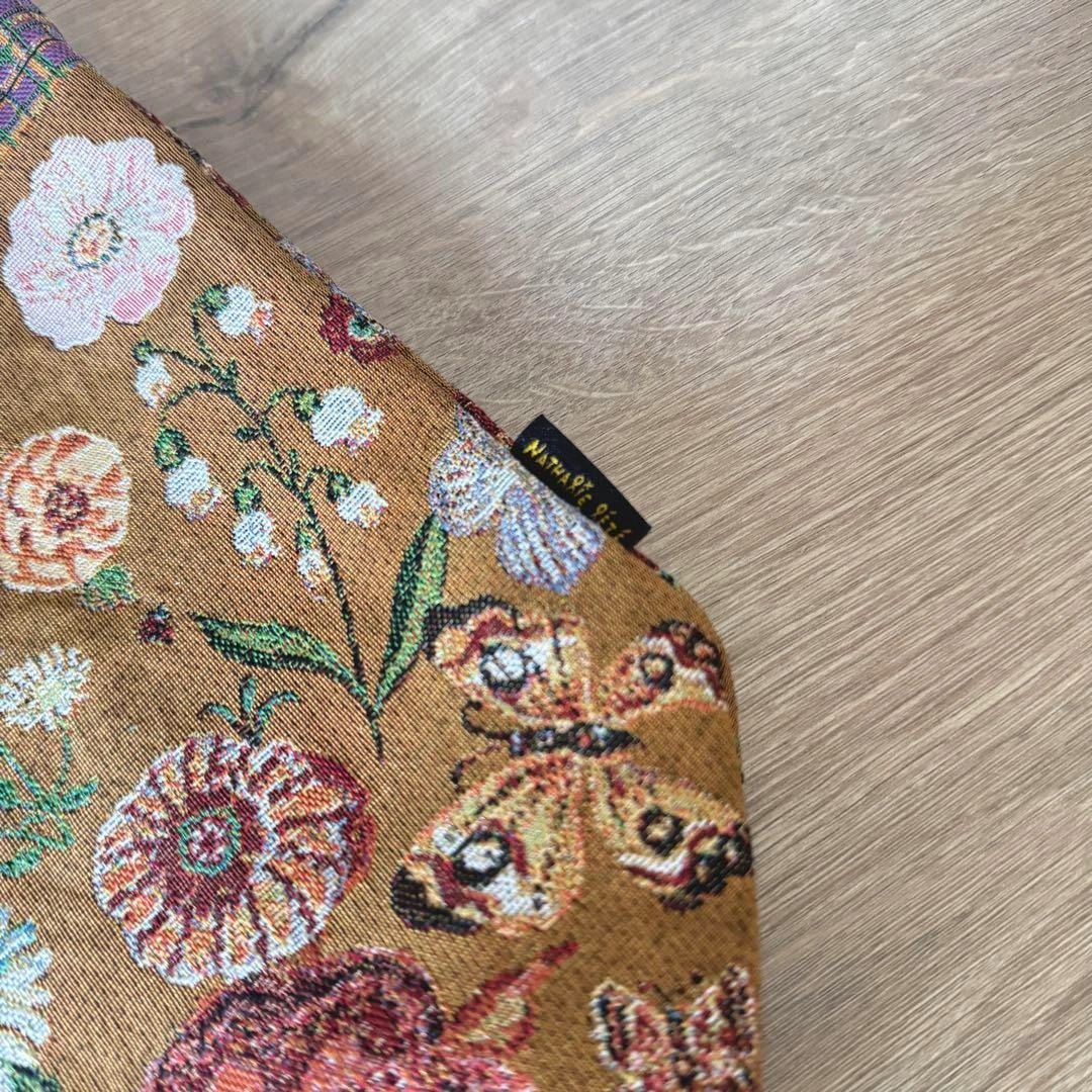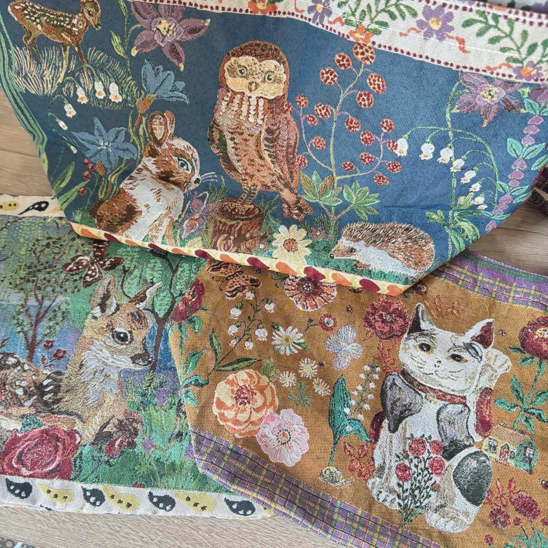ナタリー・レテの個性が光るトートバッグです。 フロントには愛らしい招き猫とカラフルな花々が織り込まれ、持っていると気分が上がります☆ ゴールドがかったブラウンの背景色はどんなファッションにも合わせやすいと思います。 細やかなデザインで、使うたびにちょっとした喜びを感じられます。 しっかりとした生地で作られているため普段使いにぴったり。 持ちやすいサイズ感で、さりげなくおしゃれなアクセントとしても楽しめます。猫好きな方へのギフトにもおすすめです◎ サイズ 46cm×26cm×マチ16cm 素材・成分 ポリエステル69%、綿17%、レーヨン12%、ナ イロン2% ※製造工程上、デザインのズレ、色ムラや織ムラがある場合がございます。 ※ネップが生地の表面に出ている場合がございます。 ※手作業での縫製の為、商品毎にサイズが異なります。 ※絵柄の出方は商品毎に異なります。 ご希望の方はお気軽にご連絡ください。