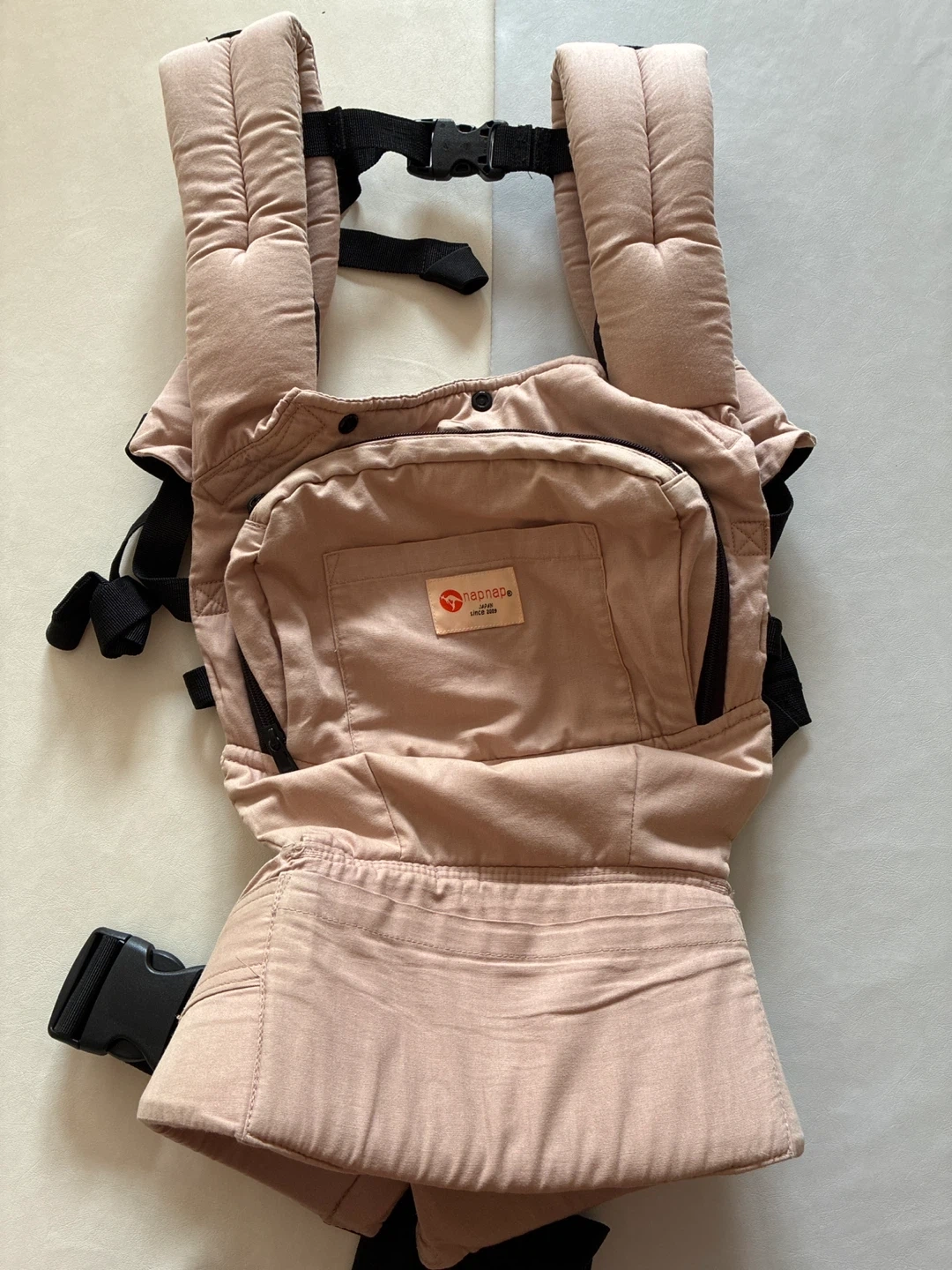 ナップナップの抱っこ紐です ・色:ベージュ ・使用感は少なめです ポケットがありメッシュ素材に なってるので夏場は保冷剤を入れられます。 主に新生児の時に使用してました。 写真にUPしてませんが、 新生児用のインサートクッションも お付け致します。 新品未使用のおしゃぶりも 必要でしたらお付け致します