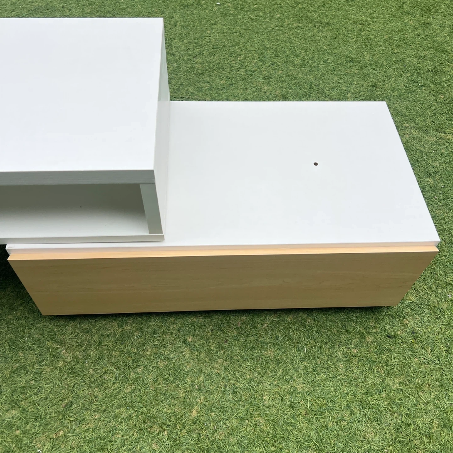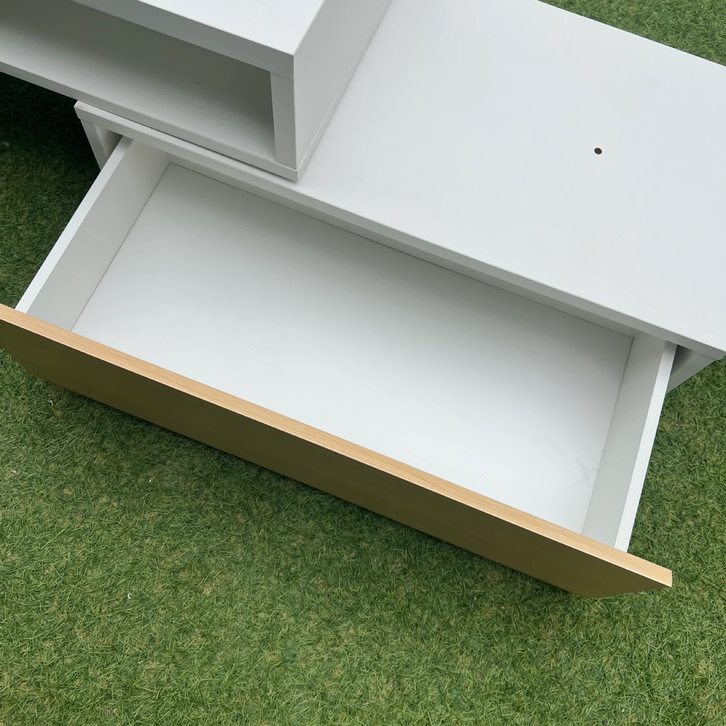 横浜市内であればプラス1,000円で配達可能です! 予定が合えば多少離れたエリアでも配達可能です。 ※その他地域はコメントにてご相談くださいませ! [幅79cm] ローボード (ギャラリーEX80) オープンシェルフと引き出しを備えた サイズ調整可能なテレビ台です 伸縮式で使いたい幅に調整できるので便利です 清潔感のあるホワイトカラーとナチュラルウッドの組み合わせが、お部屋を明るい印象に引き立てます 脚は右側でも左側でもどちらでも置くことができ、また、斜めにも置けるのでアレンジを楽しめます 組み立て済みなので、ダボに乗せるだけですぐに使用可能です ●サイズ: 横幅 約79〜113㎝、奥行き 約36.5㎝     高さ 約40㎝  ●色: ホワイトとナチュラルウッド 使用に伴う、傷や汚れはあるかと思いますが、まだまだ使用可能です。 写真にてご確認くださいませ。 中古品をご理解の上ご検討下さいませ!
