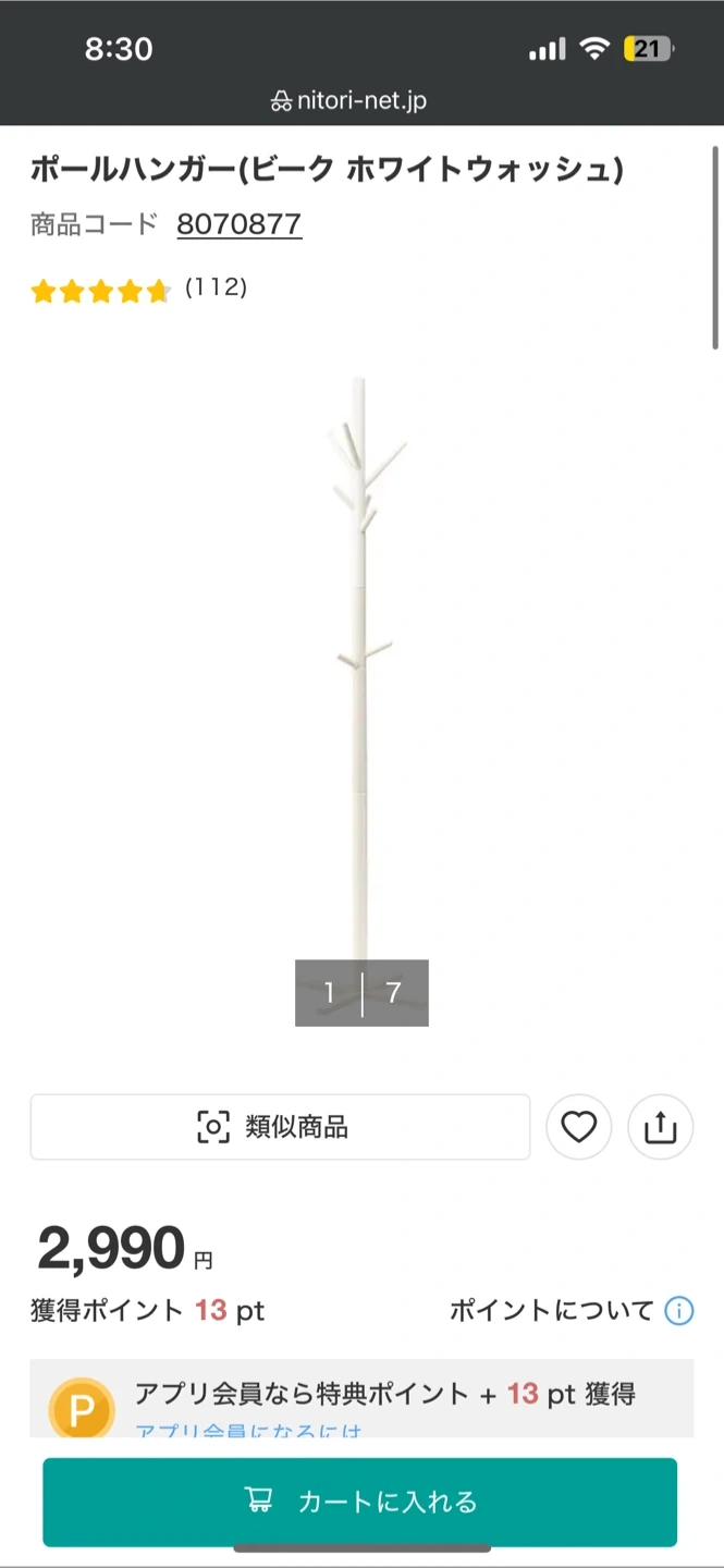 ニトリのポールハンガーです 【情報】 ブランド:ニトリ 商品名:ポールハンガー(ピーク ホワイトウォッシュ) 商品コード:8070877 カラー:ホワイトウォッシュ 【状態】 目立つキズなし 中古品であることご了承ください