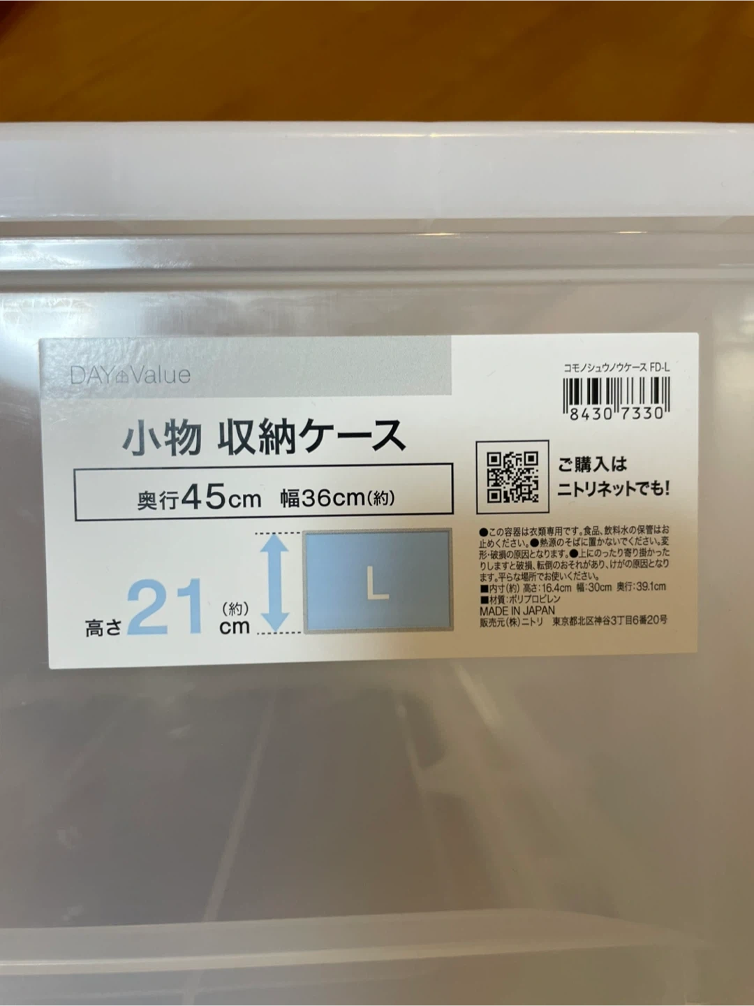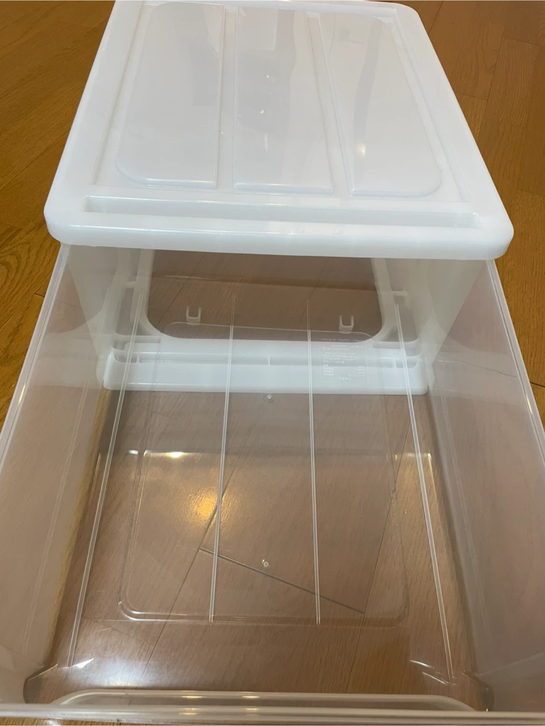 ニトリの収納ケースです。 衣類や小物の収納用として使用していました。 フタ付きで、重ねて使えるタイプなので収納に便利です。 使用に伴う多少の使用感はありますが、 目立つ破損などはなく、問題なく使用できます。 サイズはやや大きめです。 サイズ・個数 ・高さ25cm:Mサイズ × 1個 ・高さ21cm:Lサイズ × 4個 引っ越しのため手放します。 受け渡し場所 麹町駅前 または 永田町駅前 周辺を希望します。 受け渡し日時は相談可能です。 ご興味のある方はお気軽にメッセージください。
