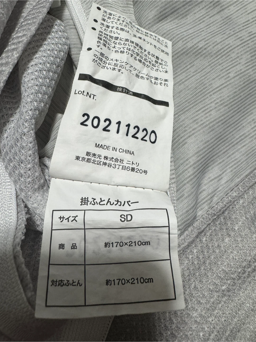 ニトリの掛ふとんカバーです。 【情報】 ブランド:ニトリ 商品:掛ふとんカバー サイズ:SD(約170×210cm) 素材:不明 【状態】 使用感はありますが、目立つ傷や汚れはありません。 中古品であることをご了承ください。