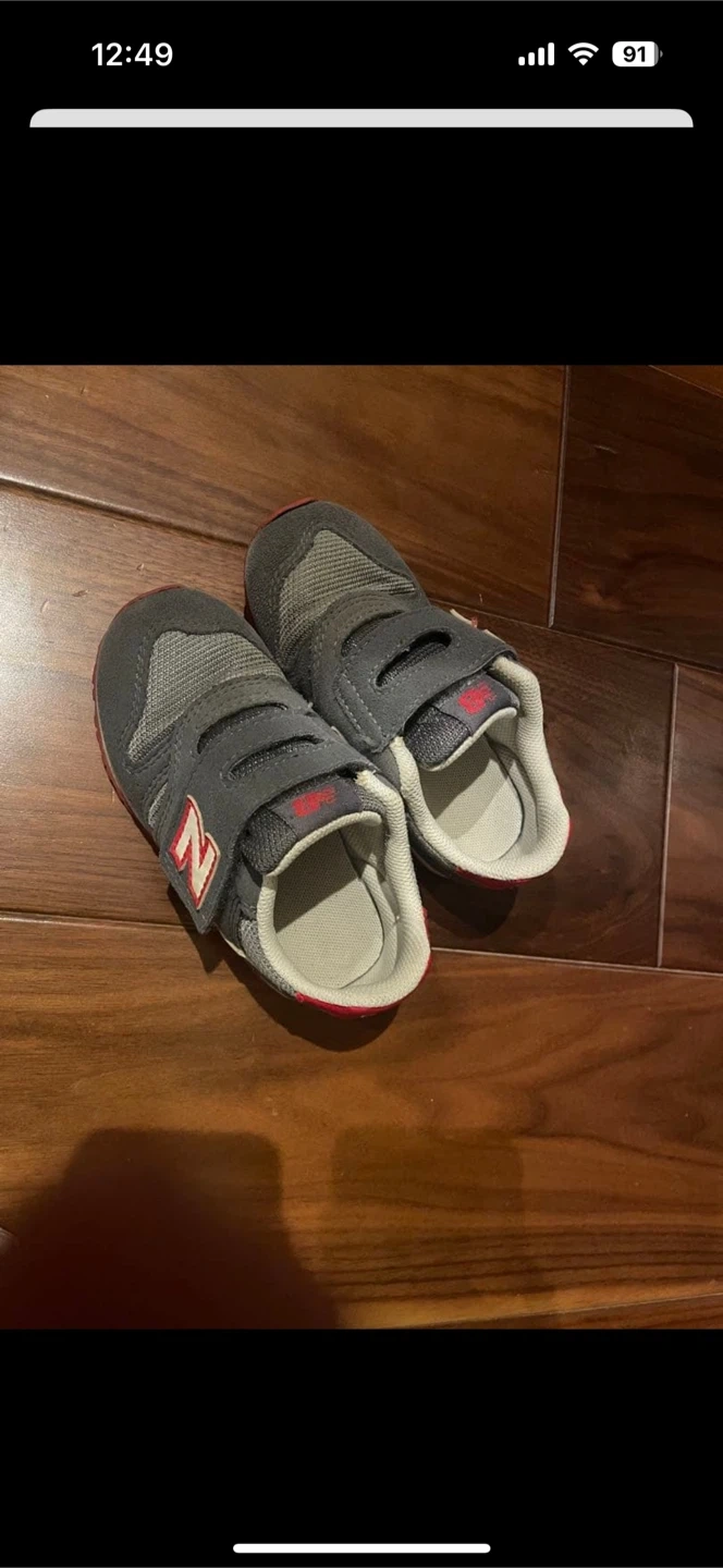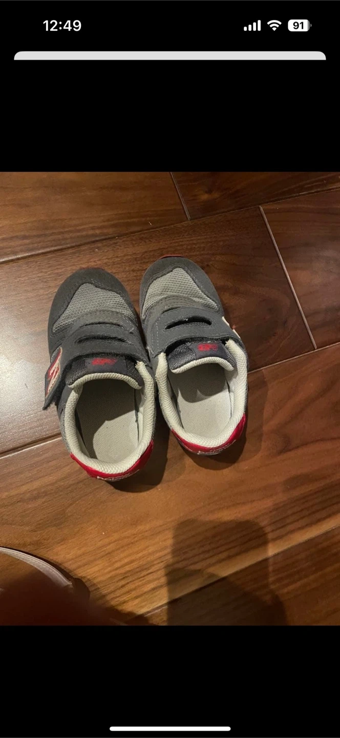 ニューバランスのキッズスニーカーです ・ブランド:ニューバランス ・サイズ:14.5cm ・カラー:グレー、レッド ・型番:BC1128593V 中古品であることご了承ください