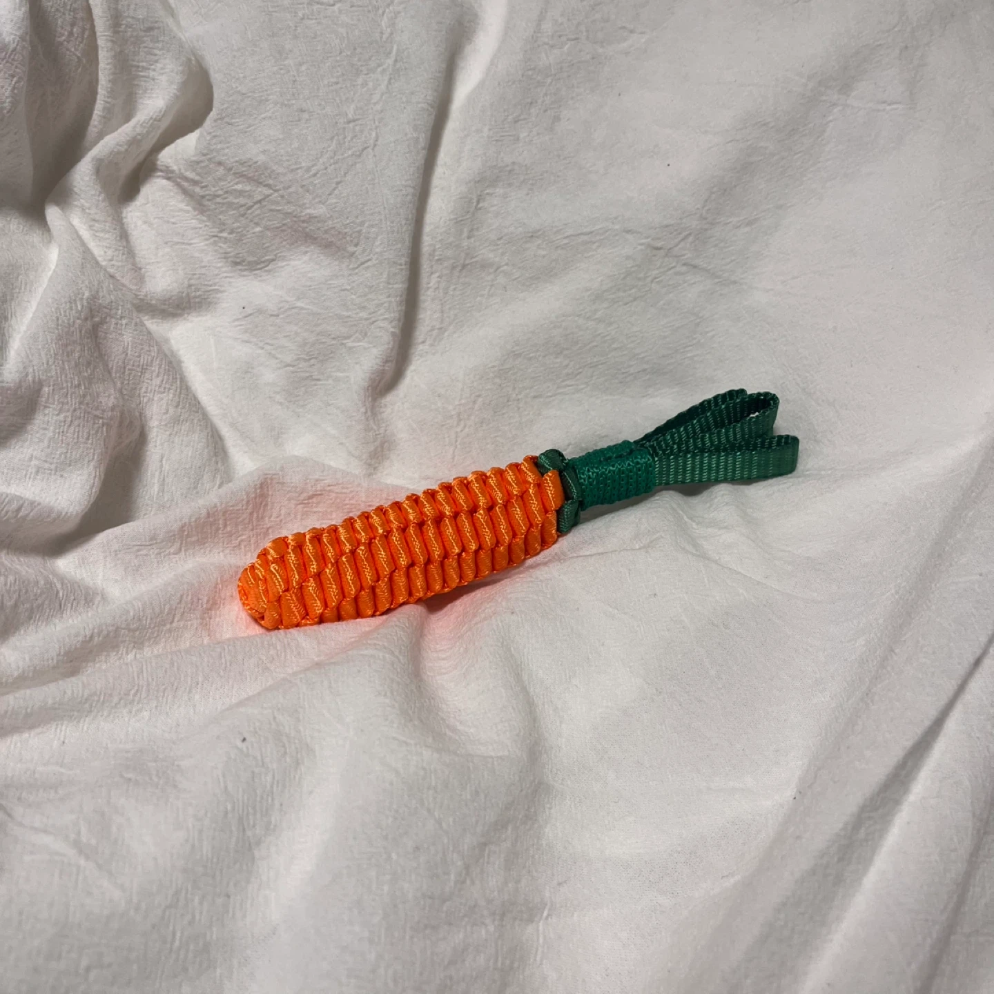 ニンジン型の犬のおもちゃです。 見向きもされなかったので出品します。 ひと噛みもしてないので状態は良いです◎ 平ロープで編まれていて結構頑丈なのでガシガシ噛めて歯磨きにもなると思います🦷🪥 伸ばすと隙間にご飯をいれられます! 葉っぱの先端まで入れて17cmくらいのおもちゃです🥕 お気軽にご連絡ください!