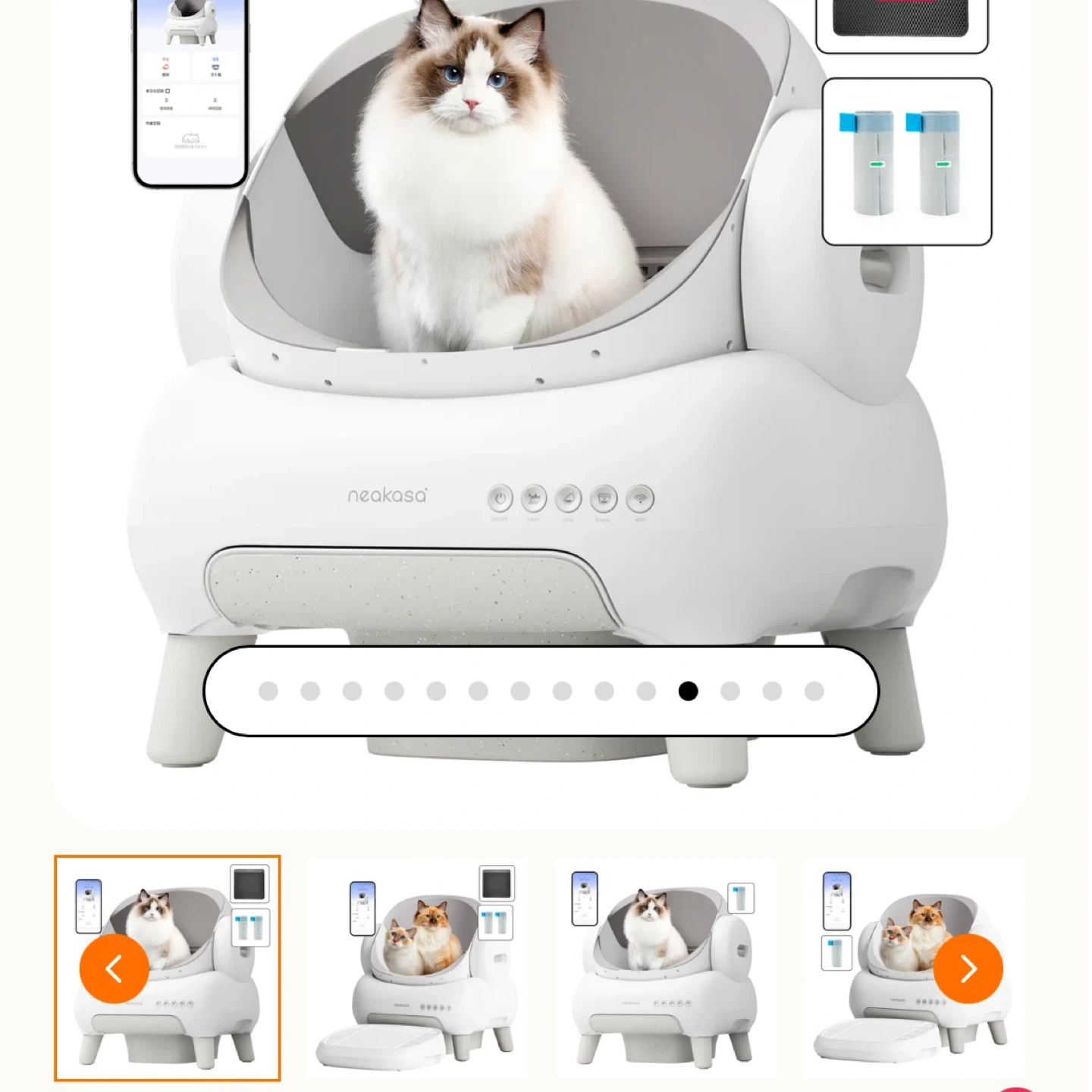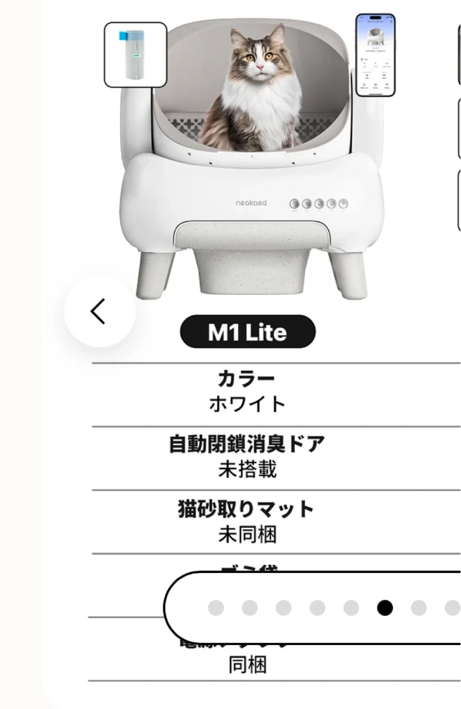 ネアカサの全自動猫トイレです 【情報】 ブランド:ネアカサ 商品:全自動猫トイレ 種類:M1 Plus & M1 Lite 色:ホワイト、グレー 残りの専用袋と猫砂、付属品全ておつけいたします。 中古品であることご了承ください。 お仕事でいただき数回つかいました。 綺麗に洗ってお譲りいたします。 定価49,820円