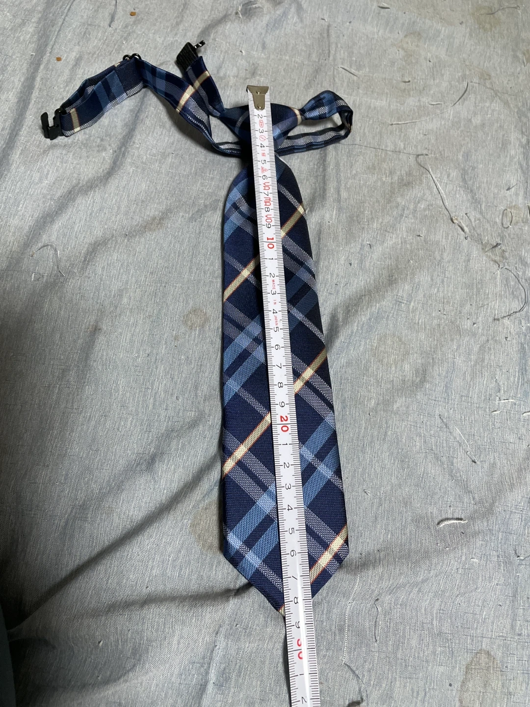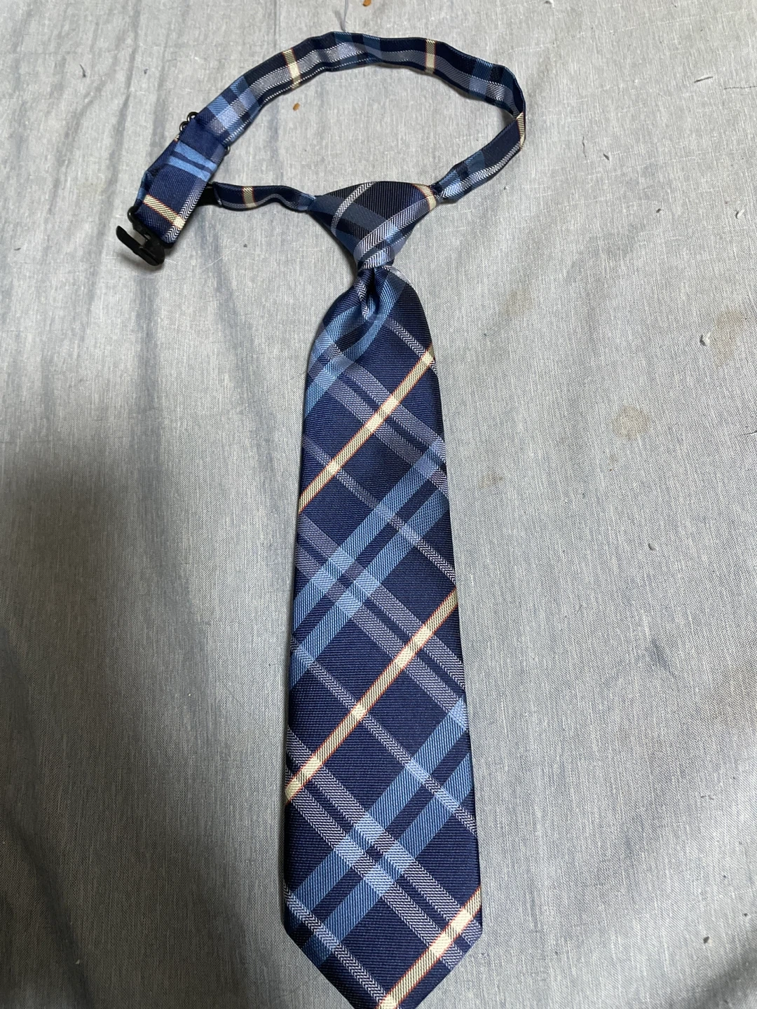 子ども用のネクタイです。卒業式に一度使用。その後、使うかもと自宅保管していましたが 使う機会なくサイズアウト。使って下さる方にお譲りします。 ・色:青、白、ベージュのチェック柄 ・サイズ:全長約30cm ・状態:使用感少なめ 中古品であることご了承ください
