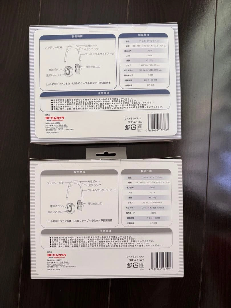 ネックファン USB充電式 2600mAh 2個セット