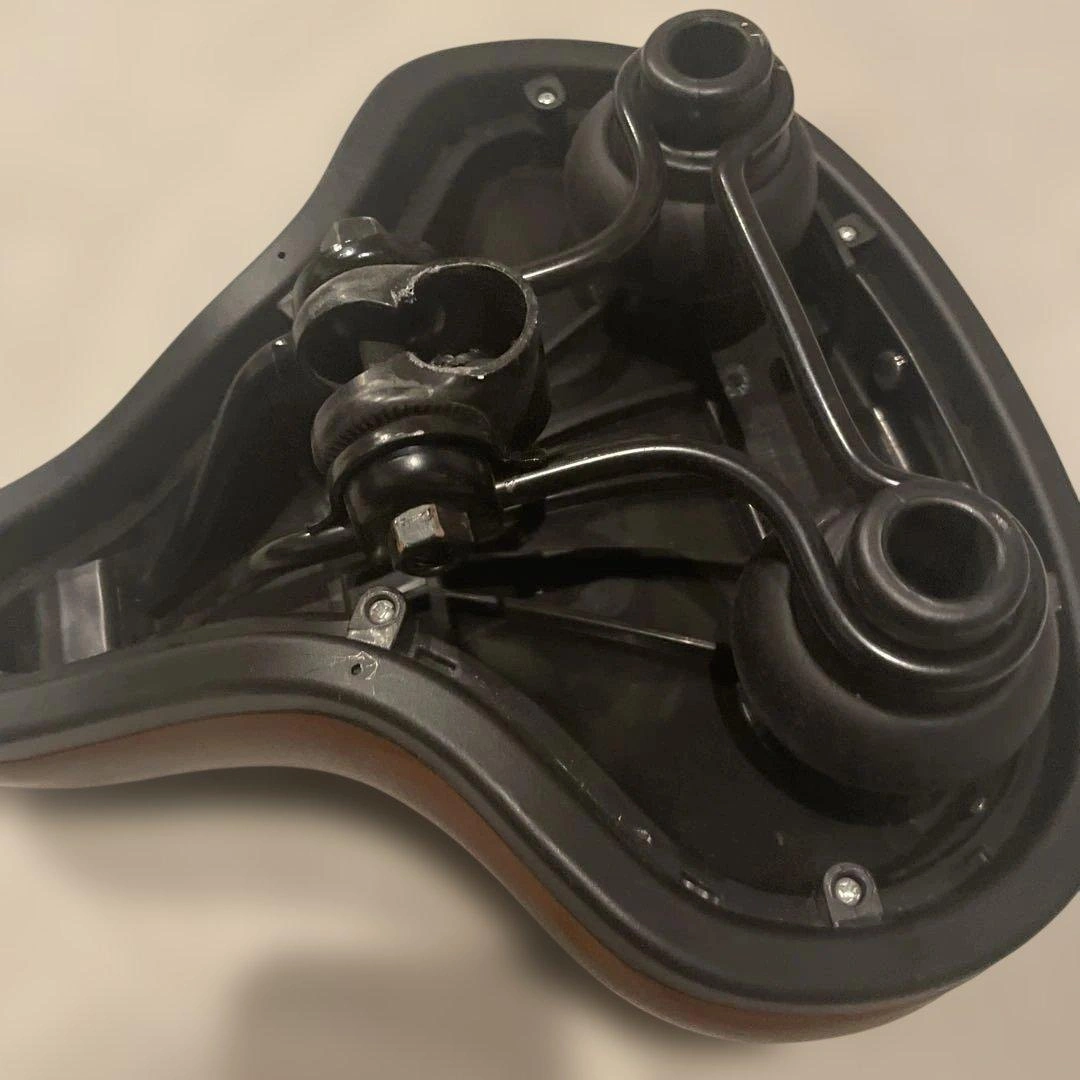 ご覧いただきありがとうございます。 ノグチ製の大型鋲付きサドル「TTZ-015X」です。 ブラウンのリブデザインが特徴で、内部サスペンションにより快適な乗り心地を実現しています。 電動アシスト自転車にも対応したモデルです。 【特徴】 •カラー:ブラウン •デザイン:リブデザイン •内部サスペンション内蔵で振動吸収性が高い •大型鋲付きでクラシックな雰囲気 •電動アシスト自転車にも装着可能 【サイズ】 写真9枚目にてご確認ください。 【状態】 シートは綺麗な状態です。 写真5枚目の「やぐら部分」に取り付け跡とわずかなサビがありますが、取り付け機構や使用には問題ありません。 その他の状態は写真をご確認ください。 【注意事項】 ※お値下げは対応しておりません。 ※中古品のため、ご理解のある方のみご購入ください。