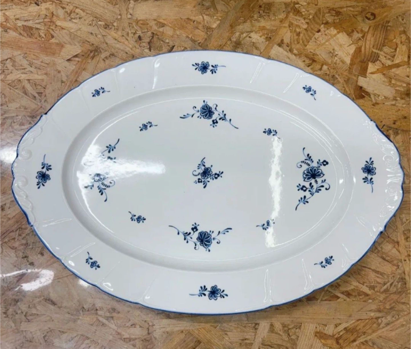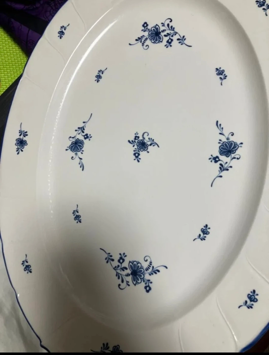 ノリタケの大皿です。 オーバル クラフトーン 楕円形大皿(オーバルプレート)です。青い花模様が特徴的な硬質陶器(せっき)の食器で、電子レンジやオーブンに対応しています クラフトーンは裏側に焼き目の画像のようなのが仕方なくできてしまいます。 ■サイズ実寸  オーバル型 直径37cm × 26.5cm 高さ 2cm ・ブランド:ノリタケ ・デザイン:花柄 ・状態:未使用 長期保管であることをご了承ください。