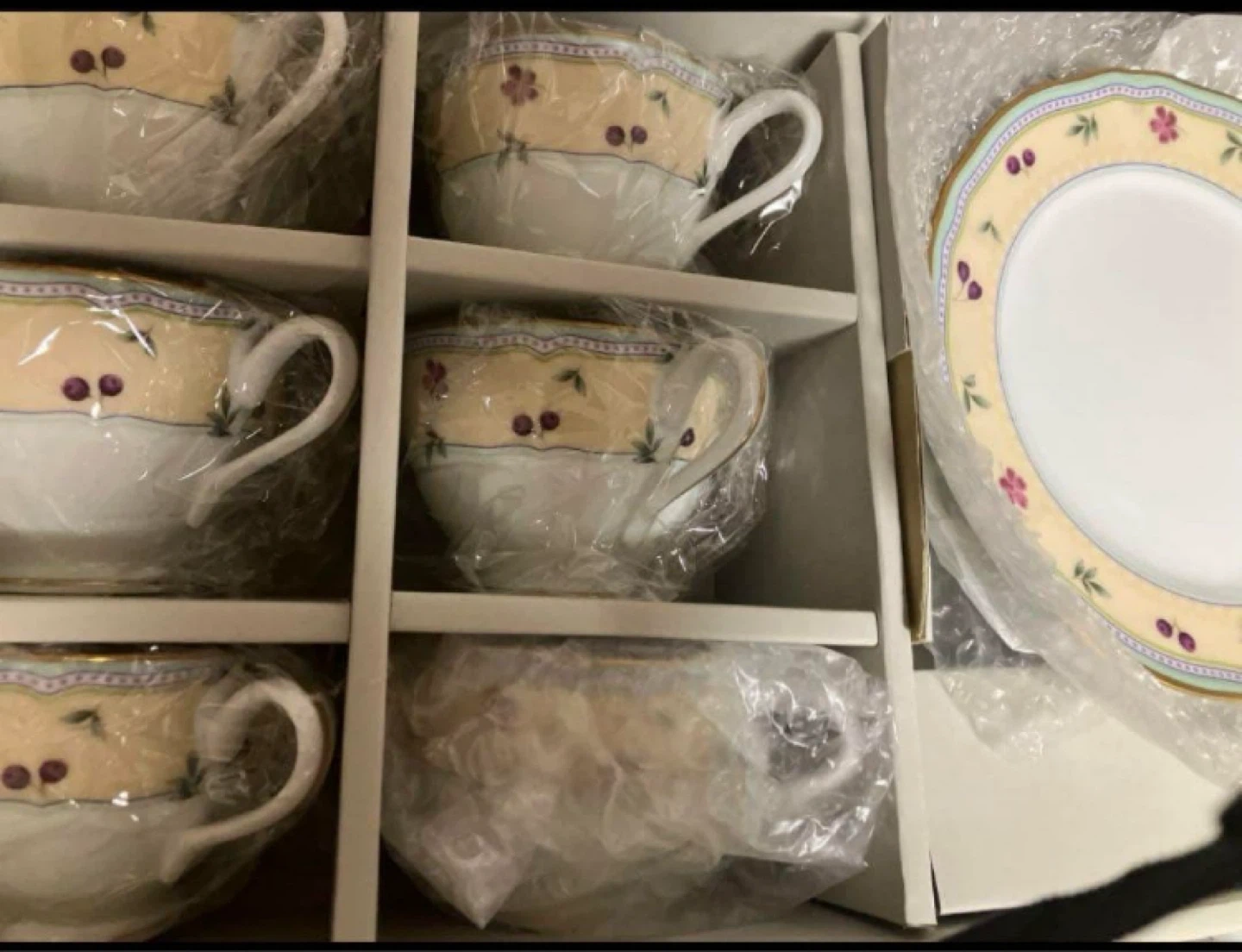 カップ&ソーサーのセットです。 ・プレート大 2枚 ・カップとソーサーのセット 5客 ・プレート 少 5枚 未使用 箱ダメージあり