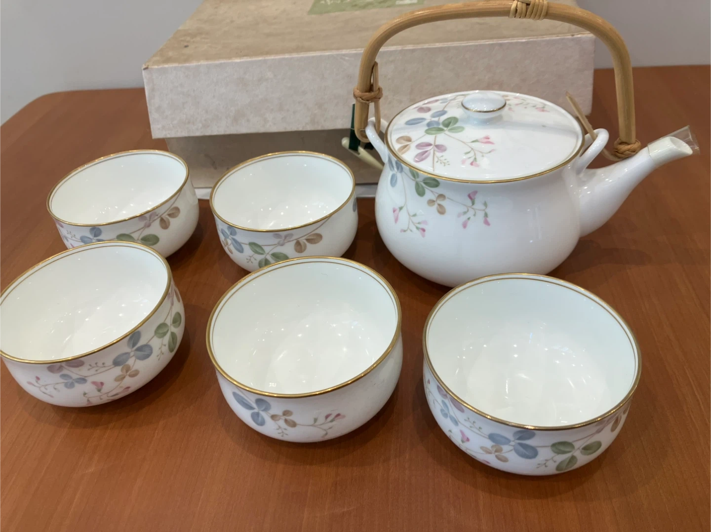 急須と湯呑みのセットです。 ・急須1個 ・湯呑み5個 ・未使用品 長期保管 ・箱付き 経年劣化のダメージかなりあり 神経質な方は御遠慮ください 長期保管の 自宅保管であることをご了承ください。