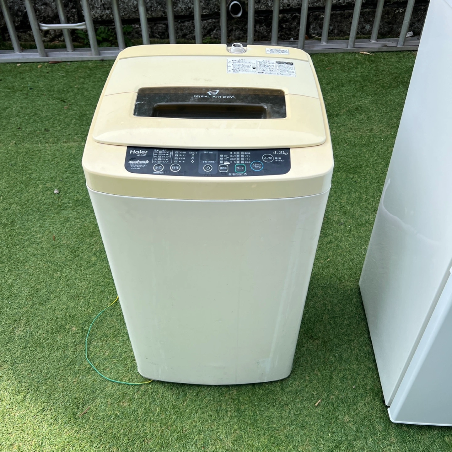 横浜市内であれば1,000円頂ければ配達も可能です! ⚫︎冷蔵庫⚫︎⚫︎⚫︎⚫︎⚫︎⚫︎⚫︎⚫︎ ハイアール 2ドア冷蔵庫 98L JR-N100C 一人暮らし 同棲 新生活 メーカー ハイアール 型番 JR-N100C 98L冷蔵庫 冷凍室32L 冷蔵室66L 幅480mm 奥行540mm 高さ995mm 重量33kg ⚫︎洗濯機⚫︎⚫︎⚫︎⚫︎⚫︎⚫︎⚫︎⚫︎ メーカー:ハイアール 型式:JW-K42F 洗濯容量:4.2kg ・外形寸法・ 幅:512mm 奥:482mm 高:878mm 色:ホワイト/ブルー系 洗濯槽:ステンレス槽 【商品特長】 ■「スパイラルパルセーター」の作り出す水流が汚れをしっかり洗浄: スパイラルパルセーターを採用することで、洗濯槽内にらせん状の水流を作り出し洗濯物の摩耗を極力低減するとともに汚れをしっかり洗浄します。 ■「風乾燥」が干し時間を短縮: 脱水時に、洗濯槽を高速回転させる遠心力と通気口から取り込んだ空気の力で衣類の水分を飛ばすので、脱水時より早く乾かすことができます。 ■ 動作確認済み 使用に伴う傷や汚れ、ヘコミ等はありますがまだまだ使用可 能です! 中古品をご理解の上ご検討下さいませ! 写真に写っているものが全てです。