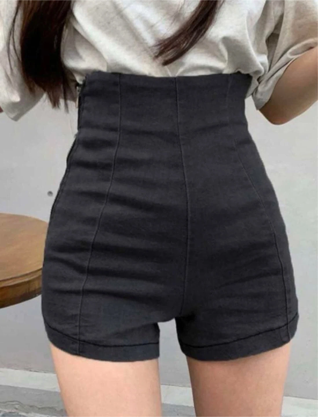 ハイウエストショートパンツ ハイウエスト黒ショートパンツ レディース サイドジップ 黒韓国セレクトショップ