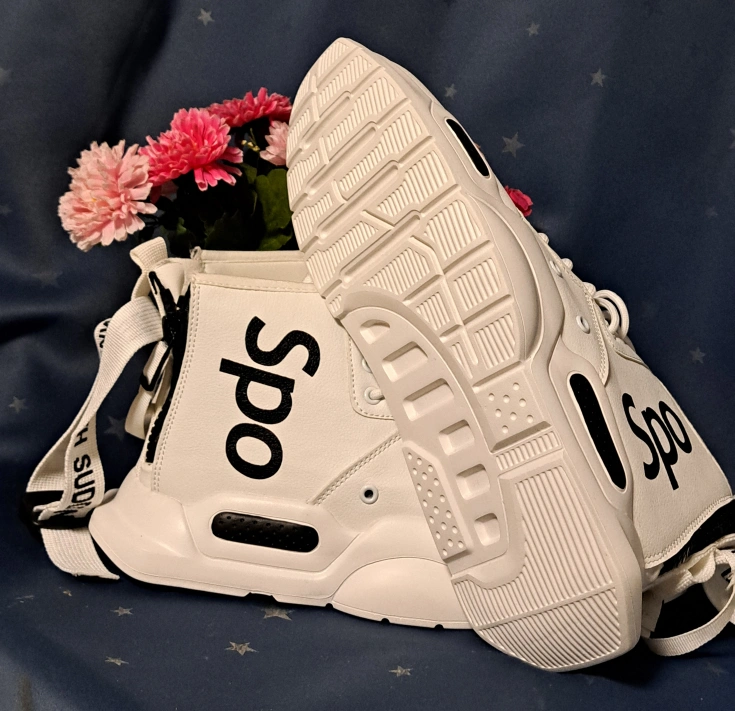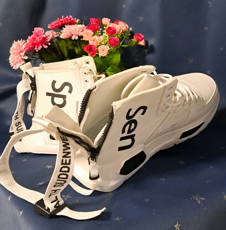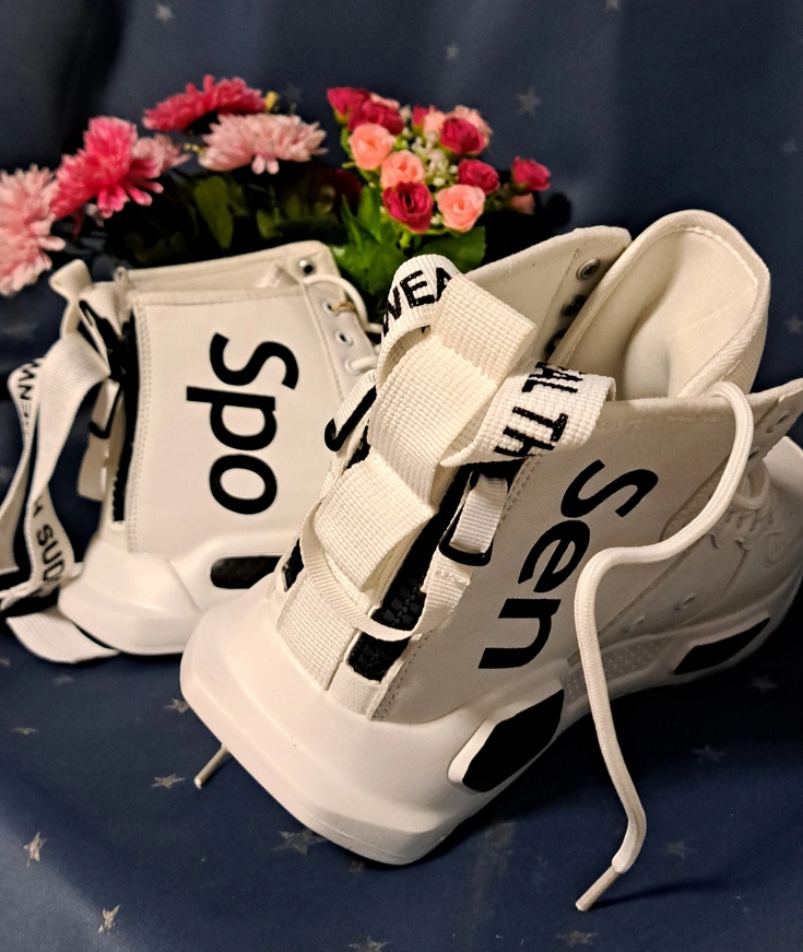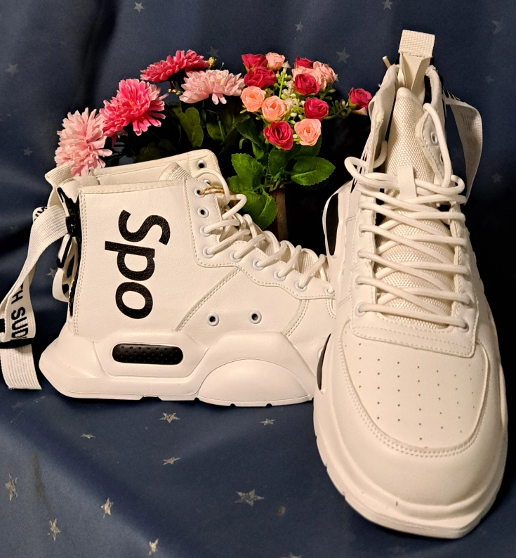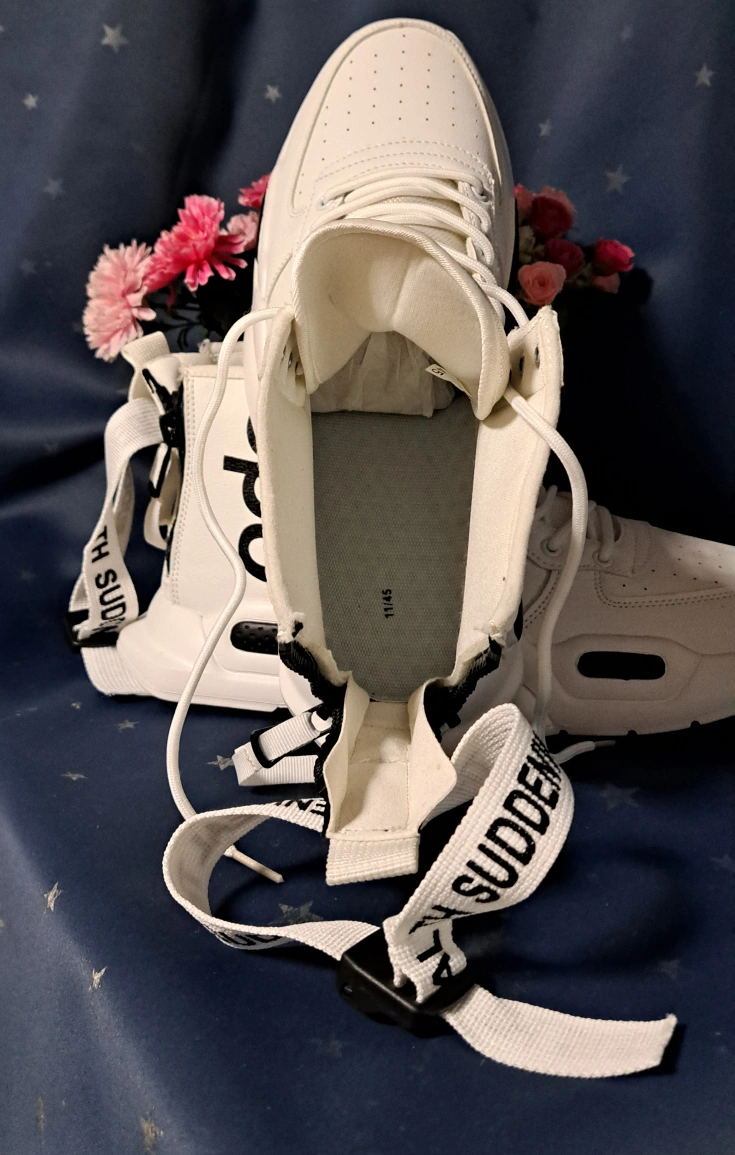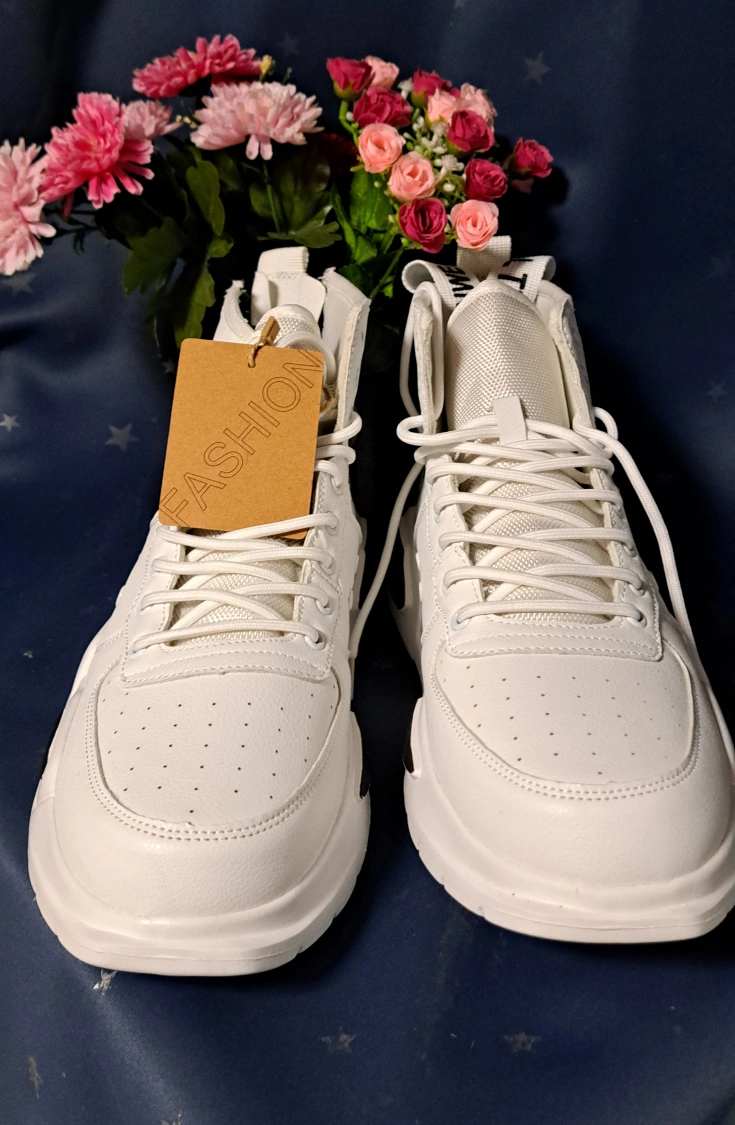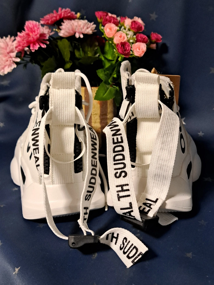 あたたかさ・カラー:ホワイト ・ハイカット ・ファスナー付き ・ロゴ入り ・ストラップ付き