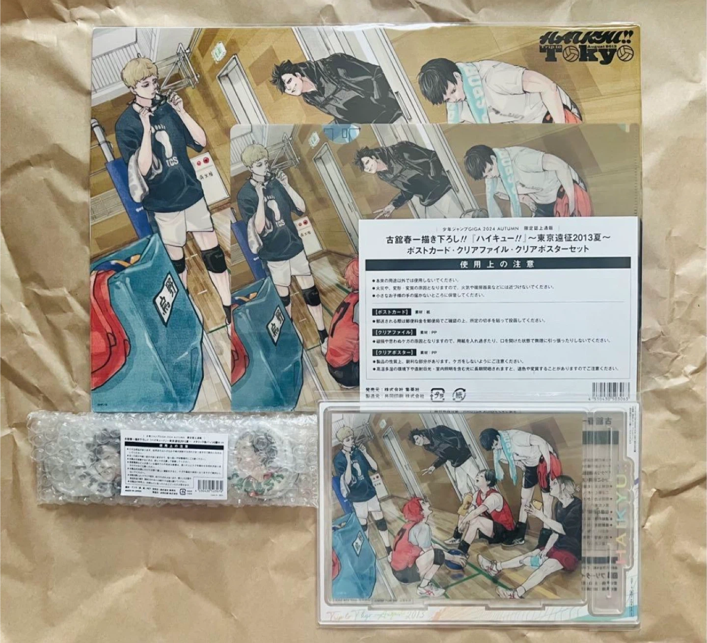 ハイキュー‼︎ 少年ジャンプ GIGA 2024 AUTUMN 古舘春一描き下ろし‼︎ ハイキュー!! 東京遠征2013  • ポストカード • クリアファイル • クリアポスター  • メタリック缶バッジ6種セット  • アクリルパネル *すべて新品・未開封ですが、初期傷等ある場合がございます
