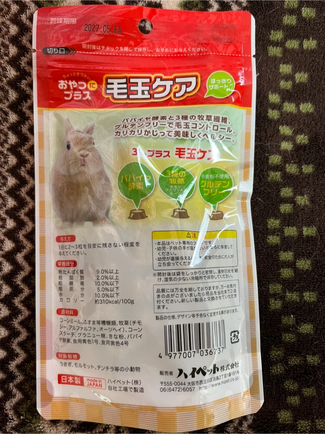 ホーム横浜市 金沢区のフリマ横浜市 金沢区のペット用品東朝比奈のペット用品ハイペット 毛玉ケア おやつ 55gあんころもっちぃ洋光台38.2℃あたたかさハイペット 毛玉ケア おや つ 55gペット用品 · 200円ハイペットの毛玉ケアおやつです。 ・内容量:55g ・対象動物:うさぎ、モルモット、チンチラなどの小動物 ・日本製 ・賞味期限:2027年5月 新品未開封です。商品の状態新品・未使用チャット0·お気に入り0·閲覧数7アプリで問合せ/購入申請取引はアプリでのみ可能です。ダウンロードしてご利用ください。あんころもっちぃさんの出品アイリスオー ヤマ ペット用ドライヤー PDR-270-W4,800円洋光台アイリスオーヤマ リンサークリーナー RNS-3004,800円洋光台ハイペット 毛玉ケア おやつ 55g200円東朝比奈ペットのためのプチ ラビットフード キャロット味 600g500円東朝比奈トゥースMDホワイトEX 歯磨き粉1,200円洋光台ベルソス コンパクト電動ミシン VS-H0194,800円洋光台